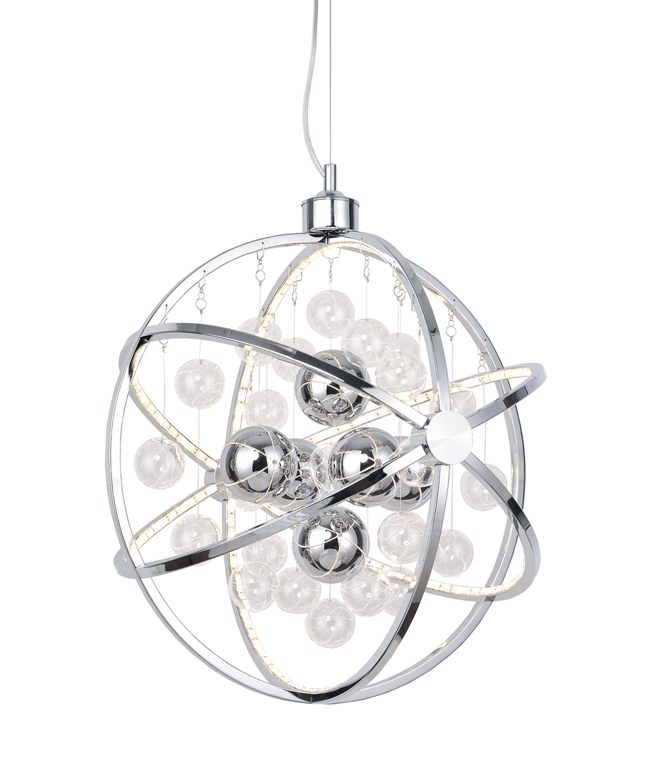 Galaxy Pendel i flot krom farve er udført i metal og glas, en anderledes fantastisk flot LED loftlampe. Lampen har et futurisk design og som navnet beskriver, giver det associationer til galaksen.