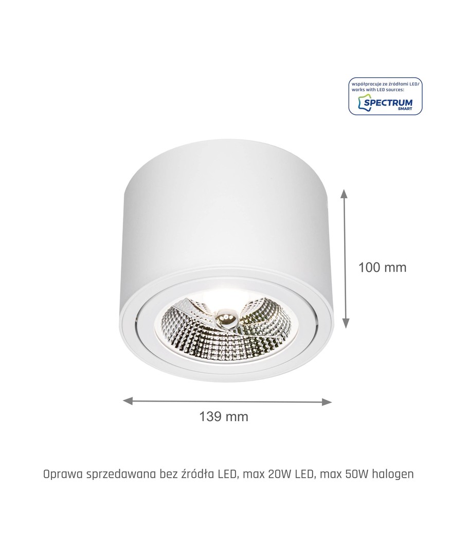 CHLOE AR111 har et rundt, hvidt design, der ubesværet blender ind med enhver indretning. Lampens minimalistiske udtryk passer perfekt til både moderne og klassiske hjemmemiljøer. Dens justerbare funktion gør det muligt at rette lyset præcis der, hvor du har brug for det, hvilket sikrer optimal belysning af dine rum.