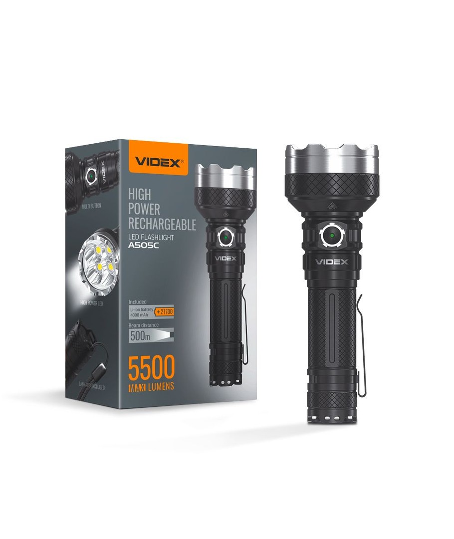 Oplev en imponerende lysstyrke med denne bærbare LED lommelygte, der leverer hele 5500 lumens. Perfekt til både daglig brug og ekstreme forhold.