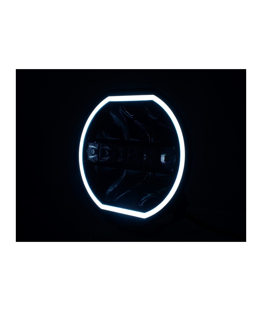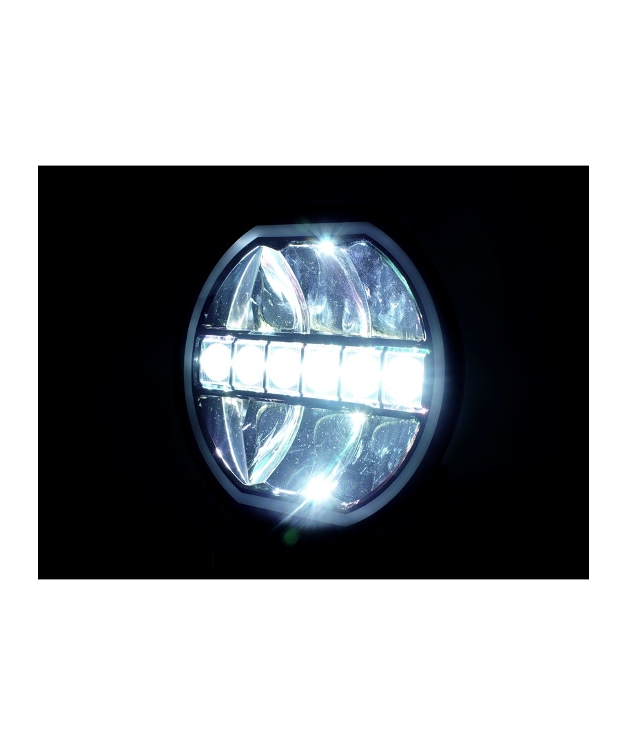 Prolumo HEXA er E-godkendte runde LED fjernlys med dual / dobbelt indbygget LED positionslys, der lyser hele vejen rundt i kanten af lygten i "neon-effekt".