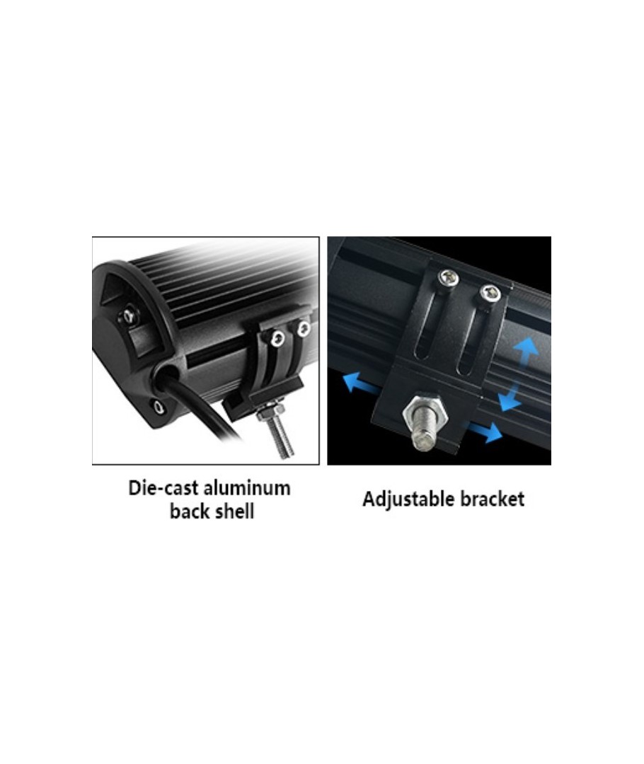 Denne LED lysbar er udstyret med LED'er af den højeste kvalitet, hvilket sikrer en driftstid på op til 30.000 timer. Selv efter lange perioder af brug vil du opleve minimalt fald i lysstyrken. Dette gør den ideel til professionel brug, hvor pålidelighed er afgørende.