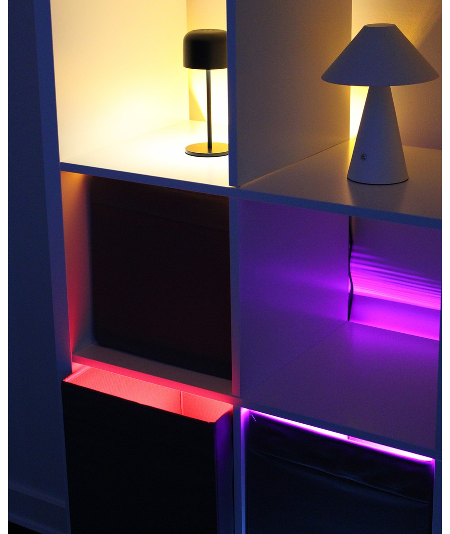 Fås i farverne: Varm hvid, kold hvid, rød, pink, blå, grøn, gul