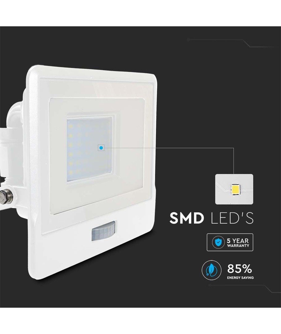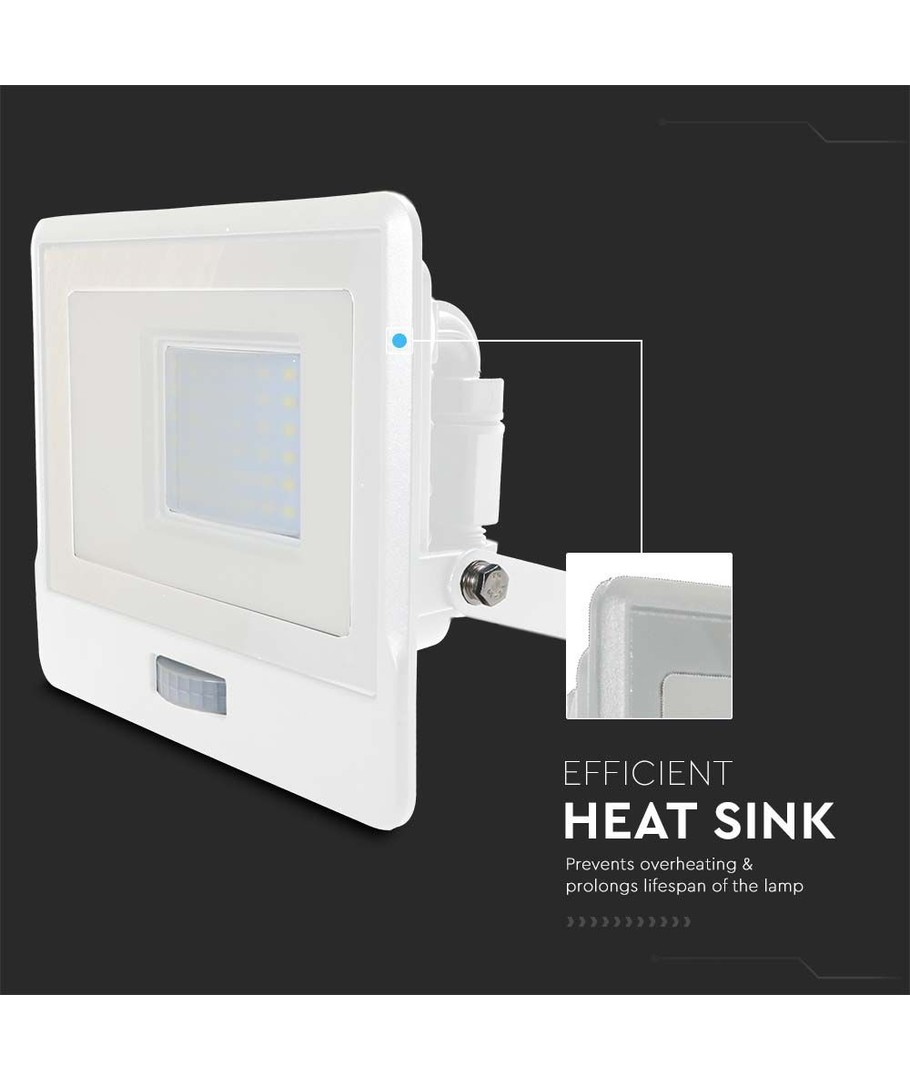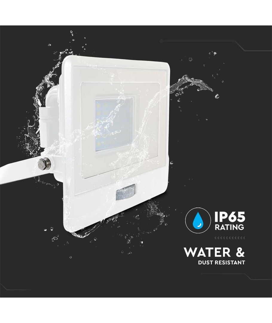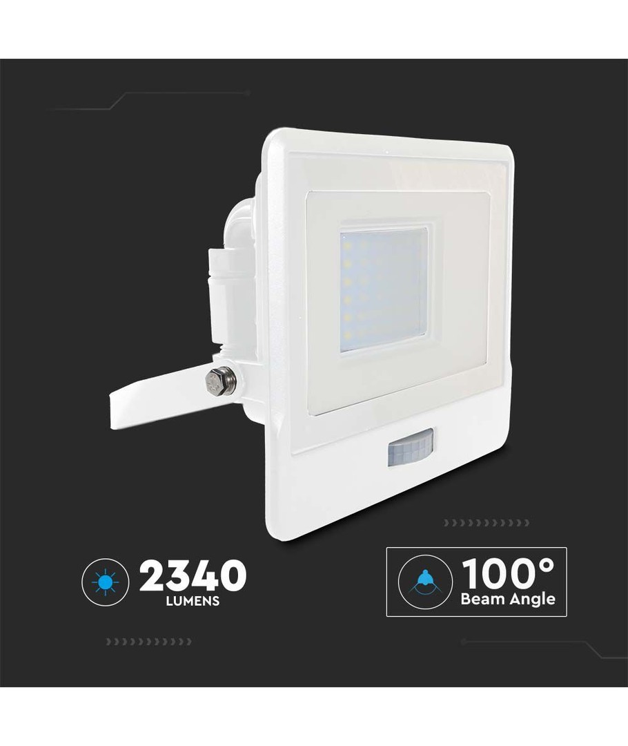 Robust bygget projektør med indbygget PIR sensor.