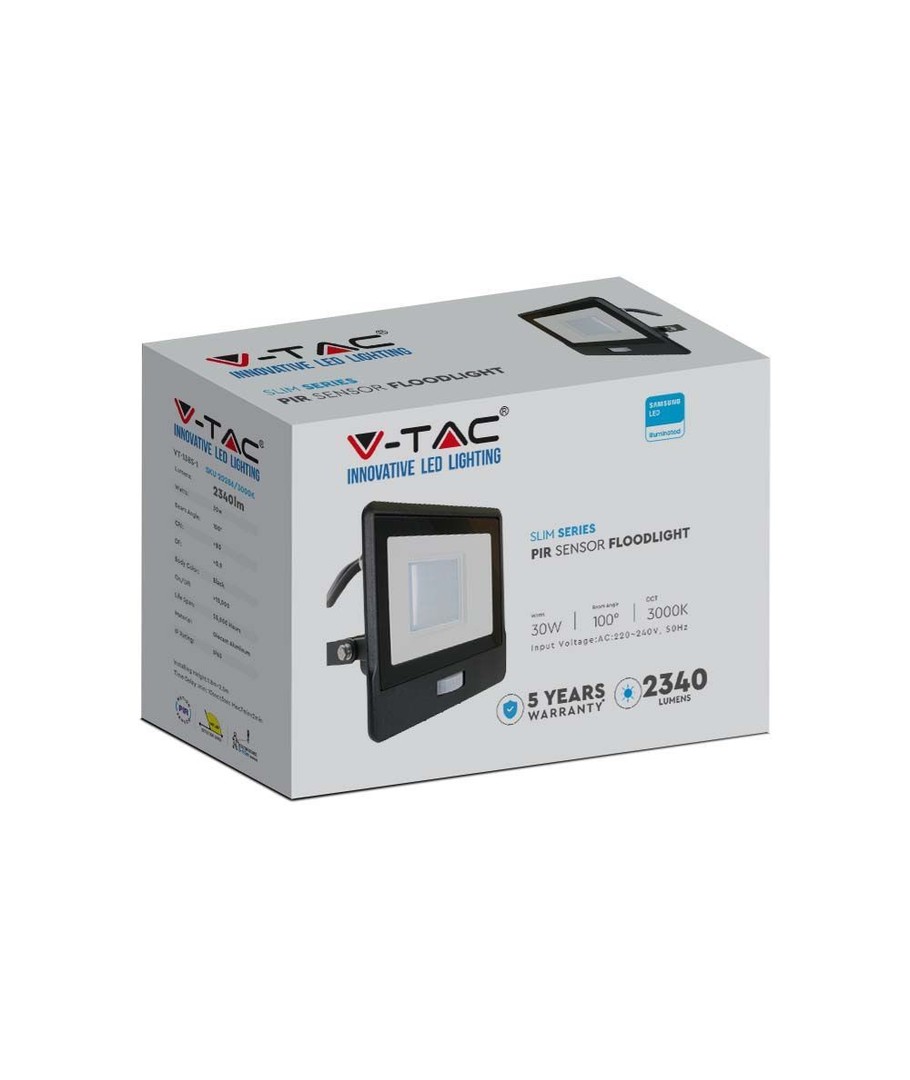 Vælg denne V-Tac 30W LED projektør for at belyse dine omgivelser med både effektivitet og stil.
