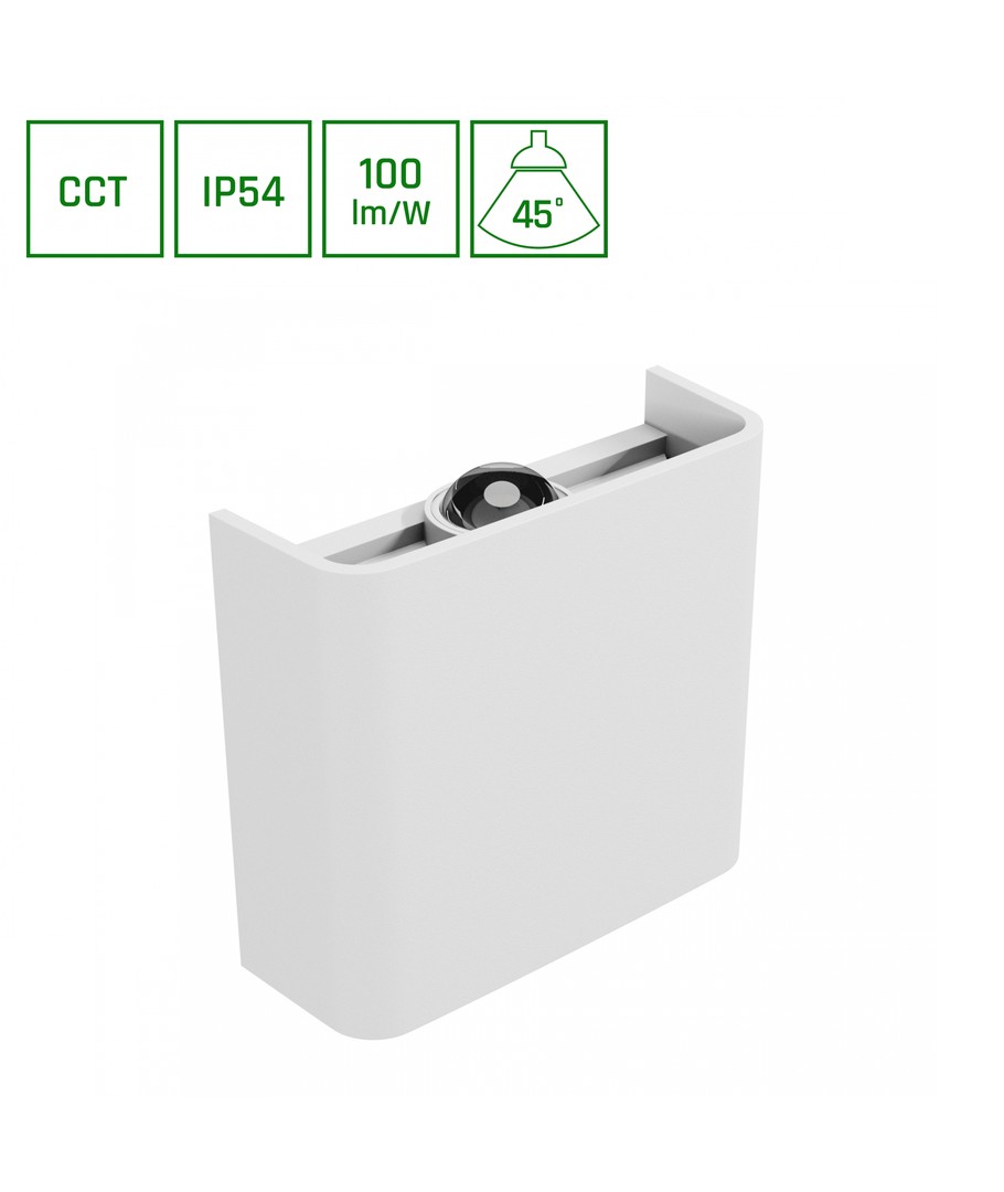 Luna 2W hvid op/ned væglampe kombinerer stilfuldt design og alsidig funktionalitet, perfekt til at forvandle dit udendørsområde med effektiv belysning og moderne æstetik.