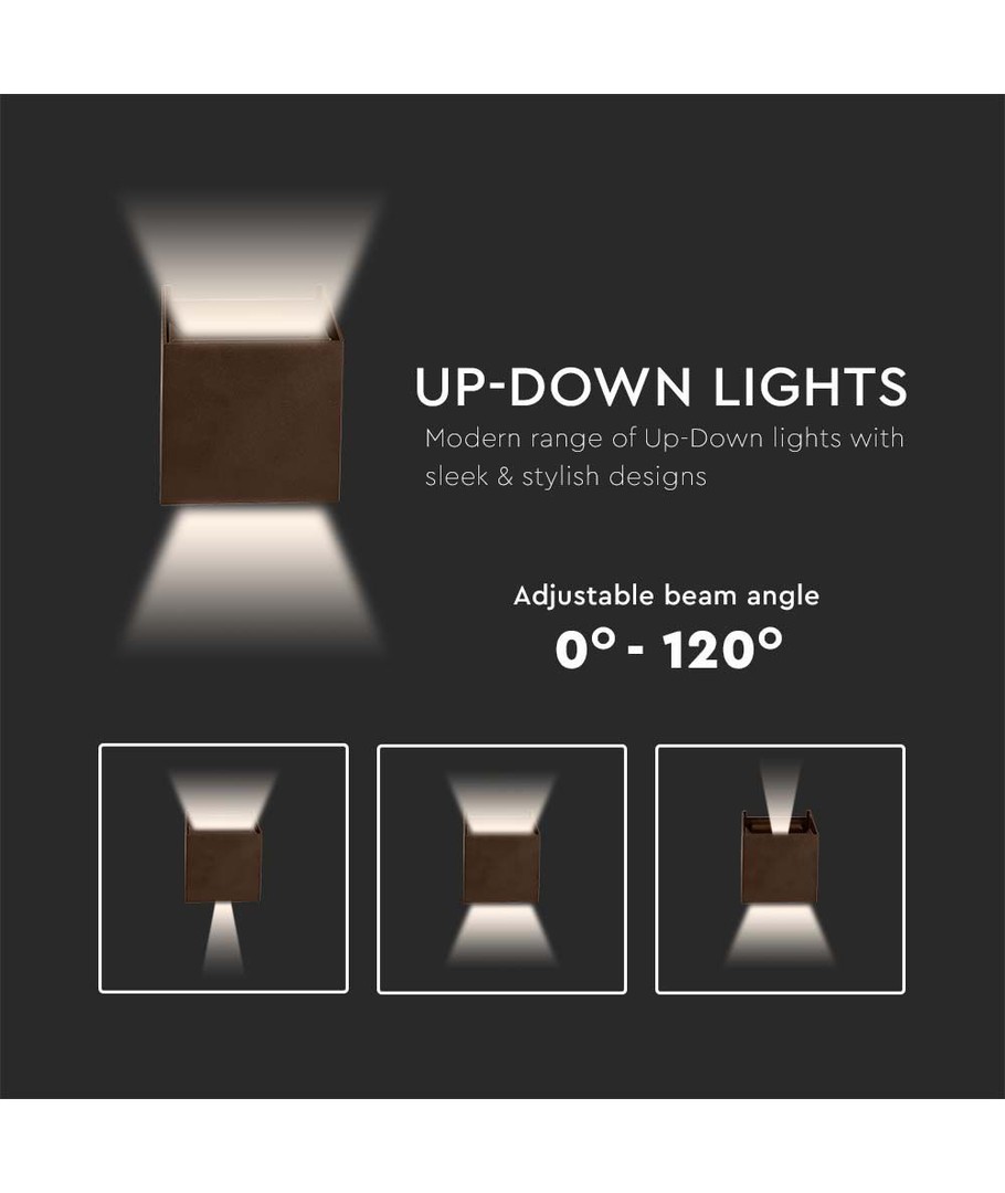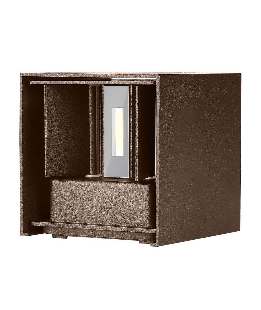 Med en kompakt størrelse på 100 x 100 x 100 mm, passer denne væglampe ind i enhver arkitektonisk stil og er nem at installere på forskellige overflader. Den firkantede form i en elegant corten finish tilføjer samtidig et moderne og industrielt look, hvilket gør den til et attraktivt valg for både hjem og erhvervsejendomme.