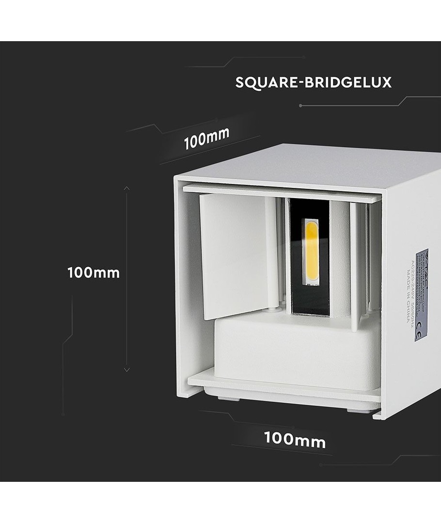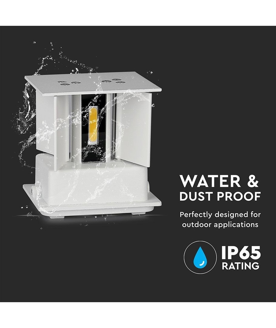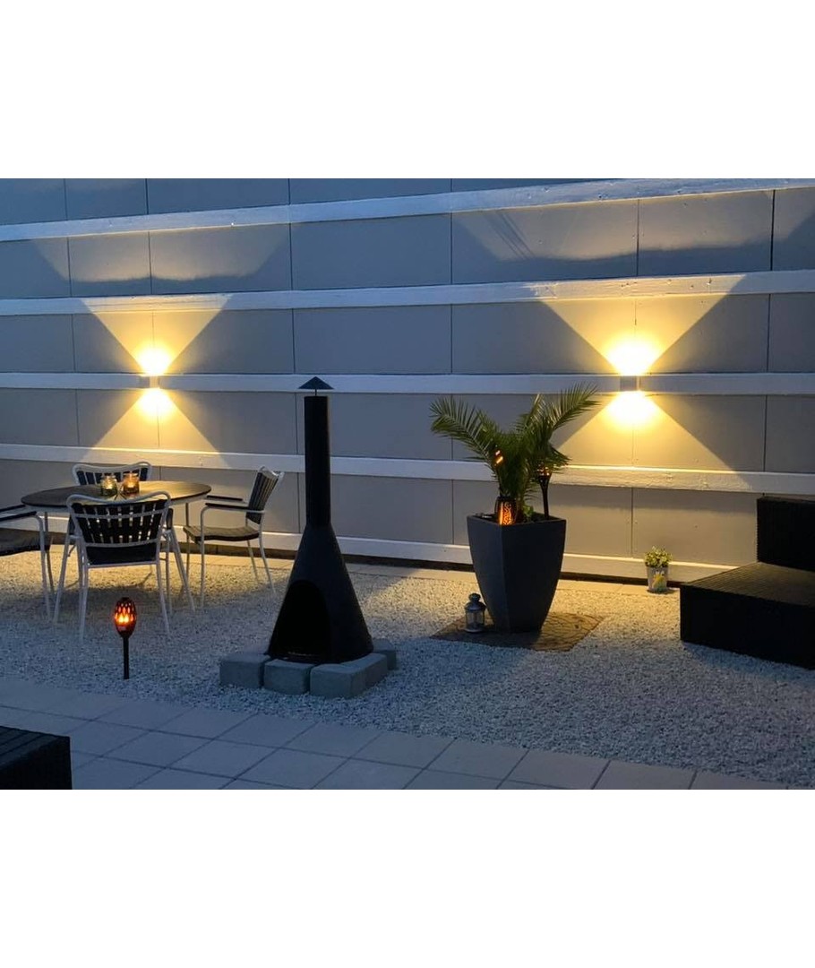 Med dimensionerne 100 x 100 x 100 mm passer denne lampe perfekt på enhver udendørs væg. Den er IP65-certificeret, hvilket betyder, at den kan modstå både vandstænk og regn, hvilket gør den ideel til udendørs brug i det danske vejr.