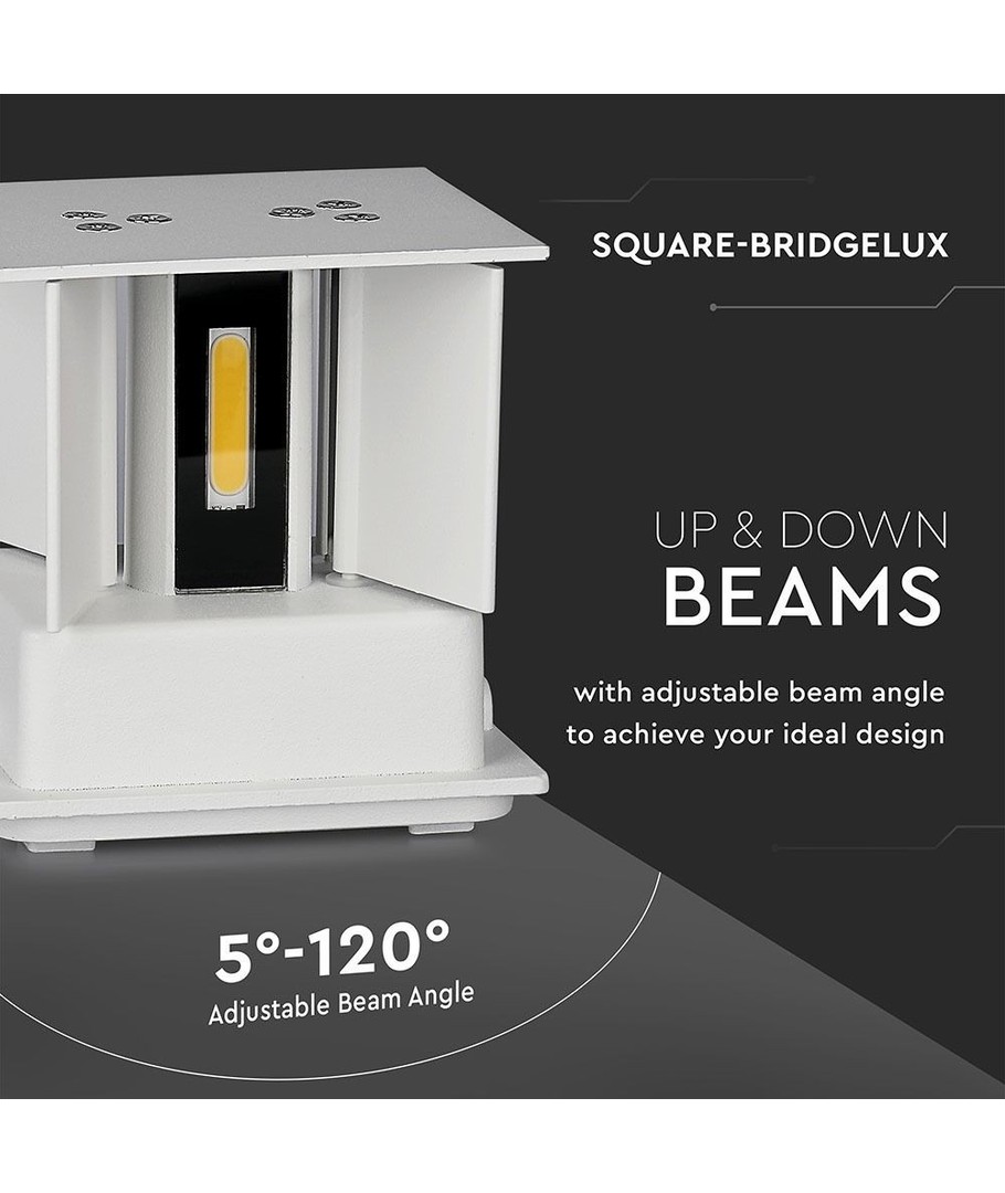 Der er mulighed for at justere spredningen uafhængigt på lyset både foroven og forneden, fra 10-120 grader.
