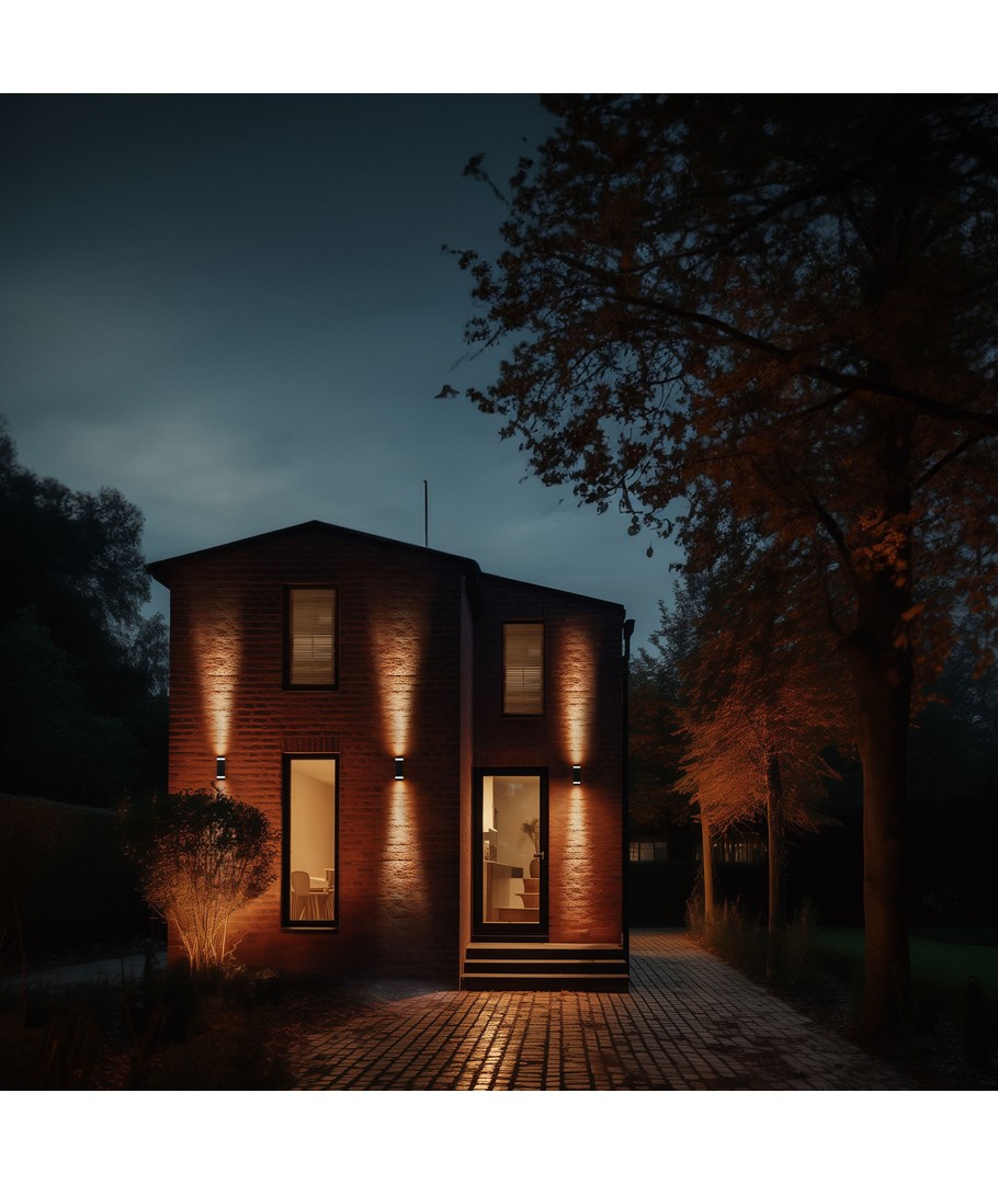 Alt i alt er denne sort op/ned væglampe den perfekte kombination af stil, kvalitet og funktion. Den tilbyder fleksibilitet i lysstyrken, er let at installere og leverer en høj lyskvalitet med et moderne touch. Sørg for at dit udendørsmiljø altid er oplyst med elegance og funktionalitet.