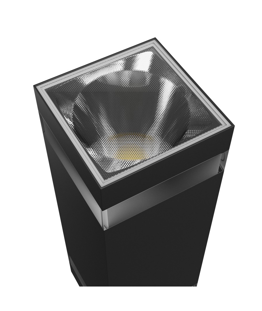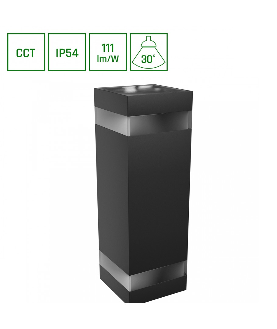 Dimensioner og Design:Lampens design er både tidløst og funktionelt. Den firkantede sortfarvede finish tilføjer et sofistikeret touch, mens dens IP54 beskyttelsesgrad gør den velegnet til udendørs installation. Den er robust nok til at klare nordiske vejrforhold og kan effektivt bruges steder med fugtig luft.