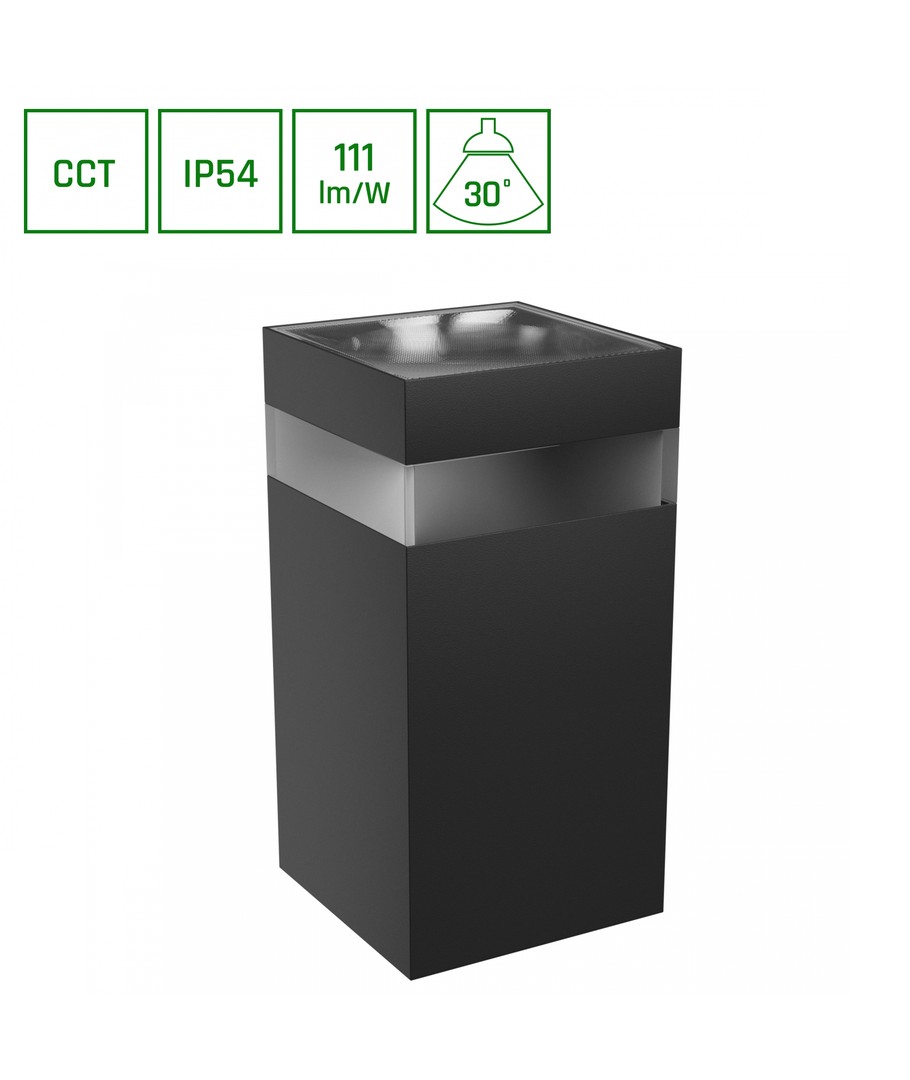 Lampens elegante, firkantede design i sort giver et moderne og tidløst udtryk, der passer til enhver udendørs indretning. Samtidig sikrer dens IP54 klassificering, at den kan modstå fugtig luft og vandstænk, hvilket gør den særdeles holdbar til udendørs brug.
