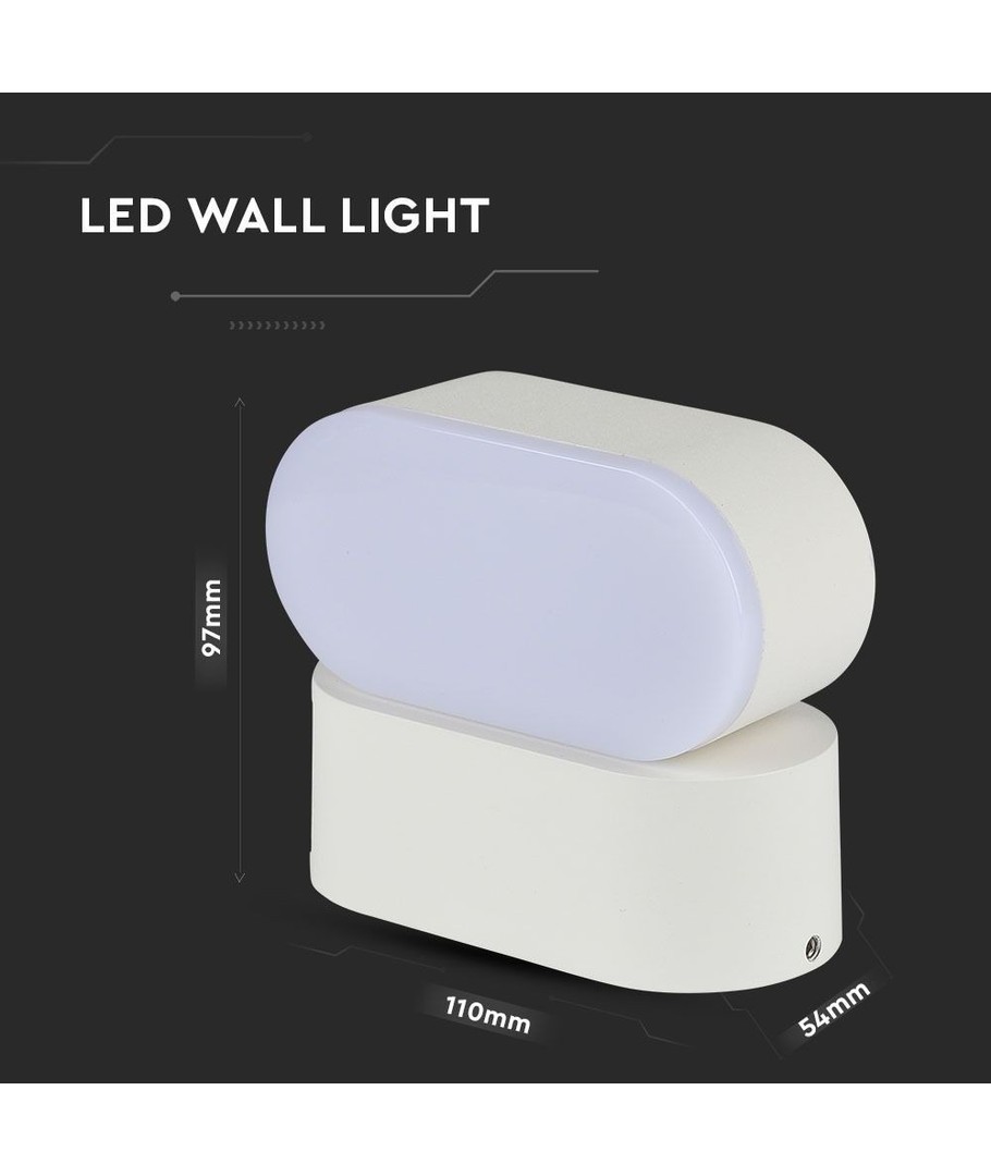 Oplev den perfekte kombination af funktionalitet og design med denne 6W LED hvid væglampe, ideel til udendørs brug. Takket være dens elegante ovale form og roterbare design, som kan drejes op til 350 grader, kan du nemt justere lyset efter dine behov.