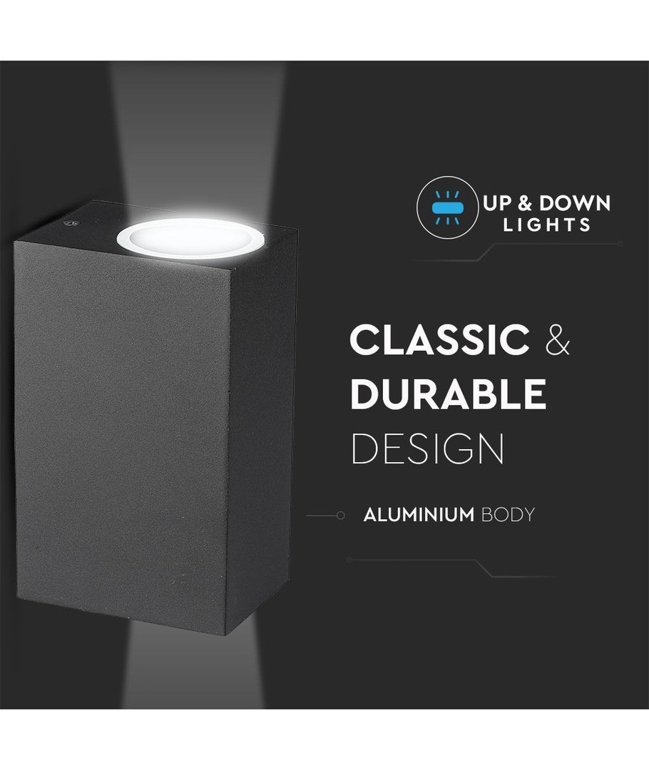 Opgrader din udendørs belysning med denne stilfulde GU10 væglampe, der giver både opad- og nedadrettet lys. Perfekt til at skabe en hyggelig og indbydende atmosfære omkring dit hjem.