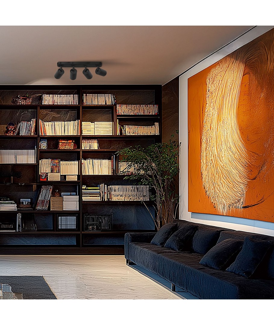 Den stilfulde loftlampe med 4 spots er en elegant belysningsløsning til ethvert moderne hjem, der søger fleksibilitet og funktionalitet.