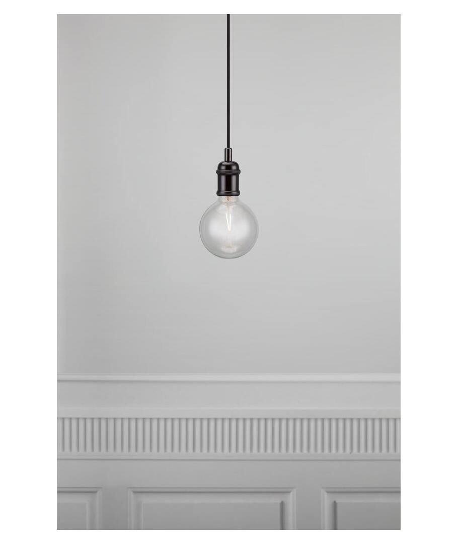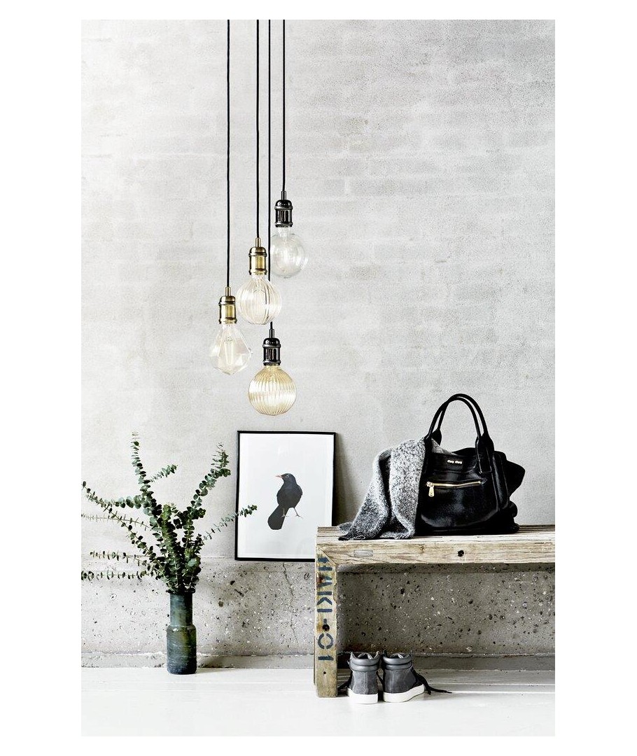 Pendelophæng i patineret look fra Avra-serien. Avra passer til alle indretninger, og leveres inkl. sort stofledning, der giver en pæn afslutning på ophænget. Anvendes uden skærm med en stor dekorationspære og er blandt andet ideel i gangen eller i klynger over spisebordet.