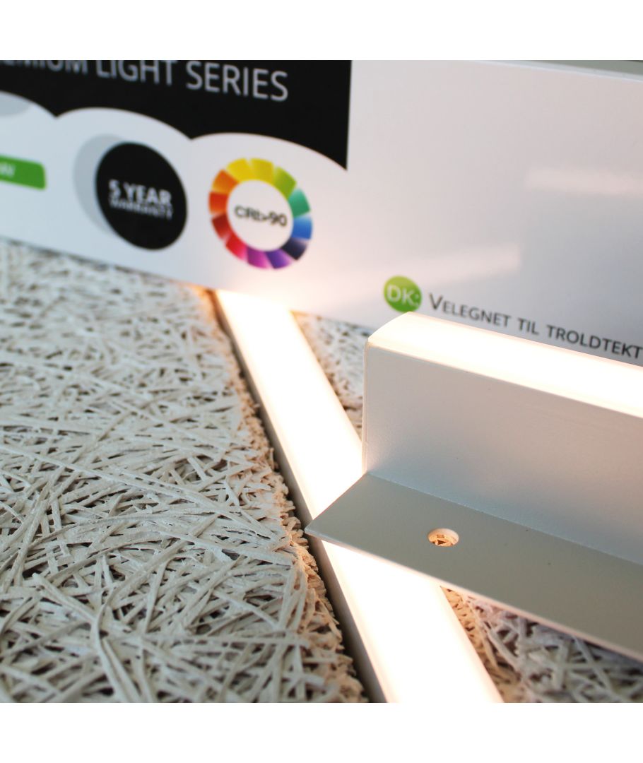 Dette produkt er en del af Akustilight serien. Den bedste og mest komplette lys løsning til Troldtekt, Fibrotech og tilsvarende loftplader.
