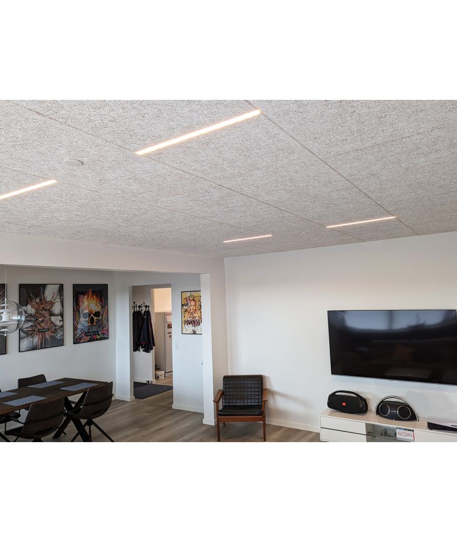 Ikke nok med at Troldtekt LED Skinnesæt giver fremragende belysning, det bidrager også til en bedre akustik i rummet. Dette gør det til et ideelt valg for rum, hvor der ønskes en kombination af optimal belysning og lydforbedring.