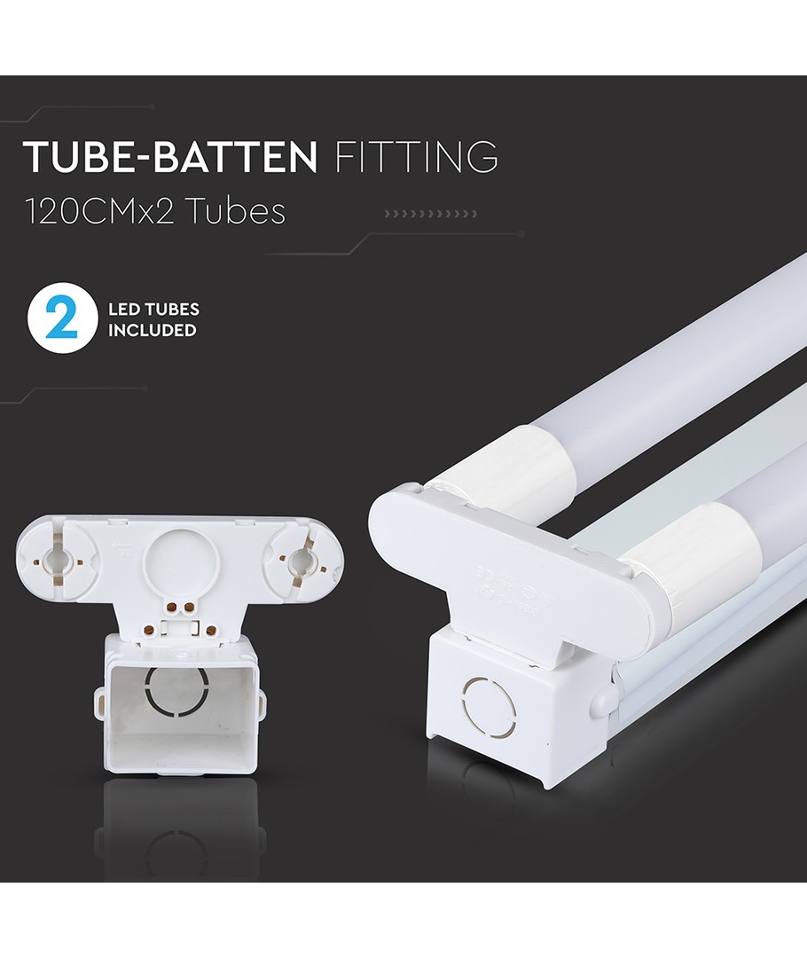 Det 120 cm 2x18W T8 LED dobbeltarmatur er en effektiv og moderne belysningsløsning med indbyggede Samsung chips, der sikrer optimal lysudbytte og energieffektivitet.