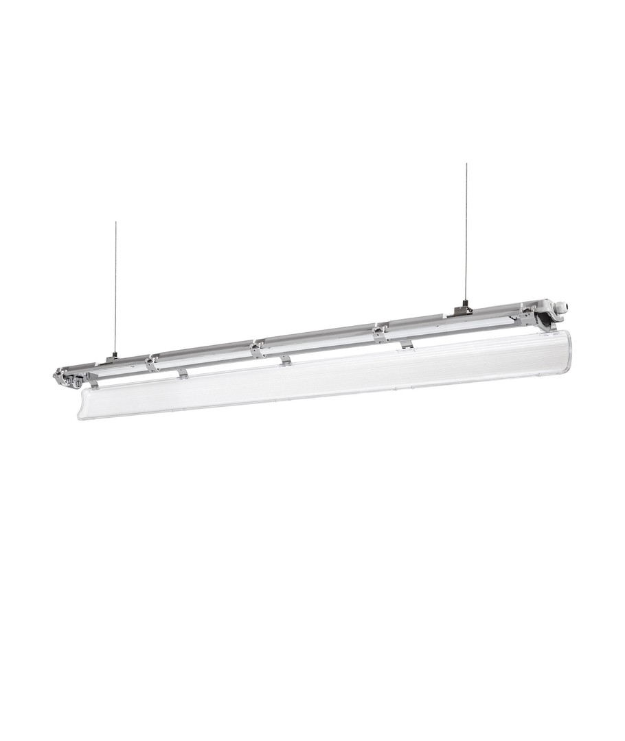 Dette alsidige LED armatur er designet til at imødekomme behovene for både indendørs og udendørs belysning. Med plads til 2x 120 cm LED rør leverer det en kraftfuld og energieffektiv løsning til dit belysningsbehov.