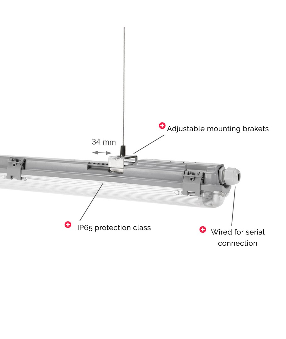 Den enkle installation og gennemfortrådning gør opsætningen hurtig og effektiv, især i større projekter, hvor flere armaturer skal tilsluttes. Limea T8 LED armatur skal tilsluttes en 230V forsyning, hvilket gør det kompatibelt med standard strømforsyninger.