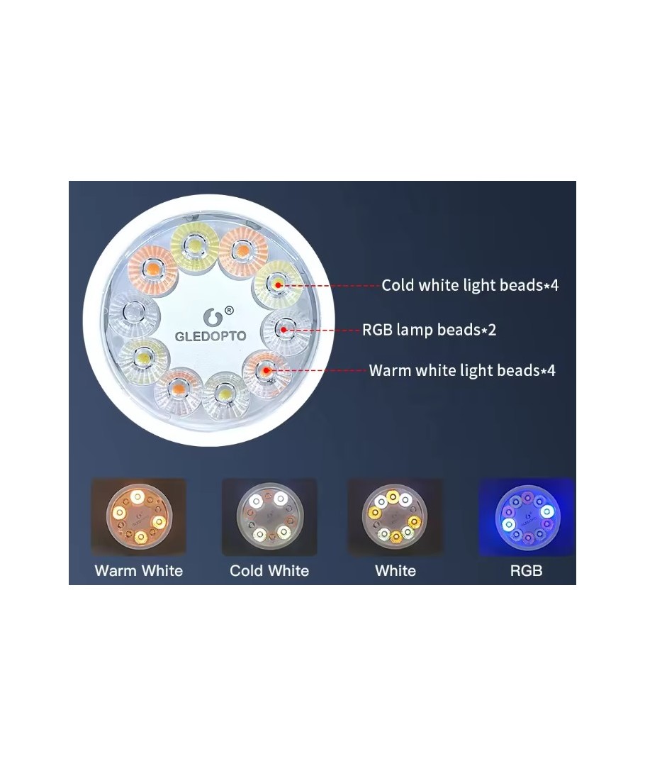Med RGB+CCT funktionalitet kan pæren justeres til et bredt spektrum af farver og farvetemperaturer, hvilket gør det muligt at skræddersy belysningen efter dine præferencer eller aktiviteter. Oplev fleksibilitet og kvalitet med Gledopto's Hue kompatible LED pære.