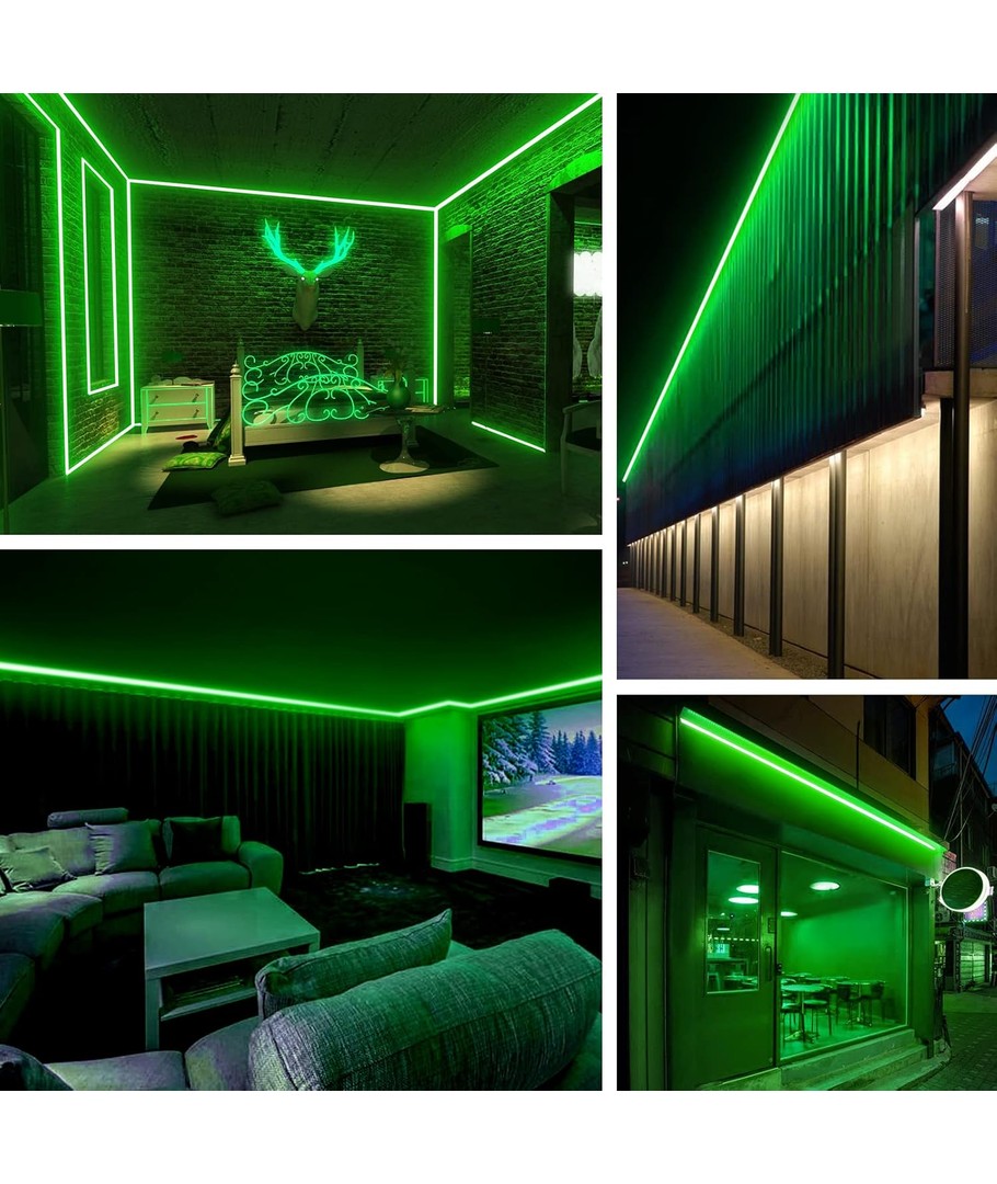 Denne LED strip er ideel til en bred vifte af anvendelser, herunder indendørs belysning, udendørs dekoration, og som strengbelysning i haver eller langs indkørsler, hvor udtryksfulde grønne nuancer kan fremhæve omgivelserne på en iørefaldende måde.