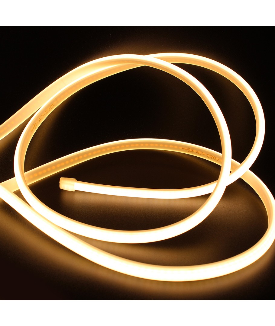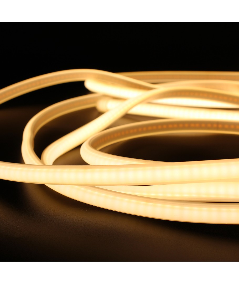 Strippen er designet til at blive tilsluttet direkte til en 230V forsyning og kan nemt dæmpes for at opnå den ønskede lysintensitet. En yderligere fordel er, at den kan tilpasses i længde ved at blive klippet for hver 10 cm.