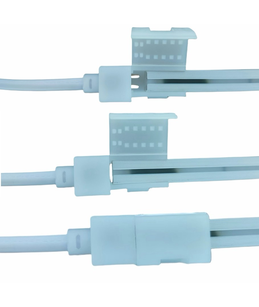 Samlingerne ved stik og endeprop skal tætnes med klar silikonelim eller krympeflex for at opnå IP67 inden produktet tages i brug.