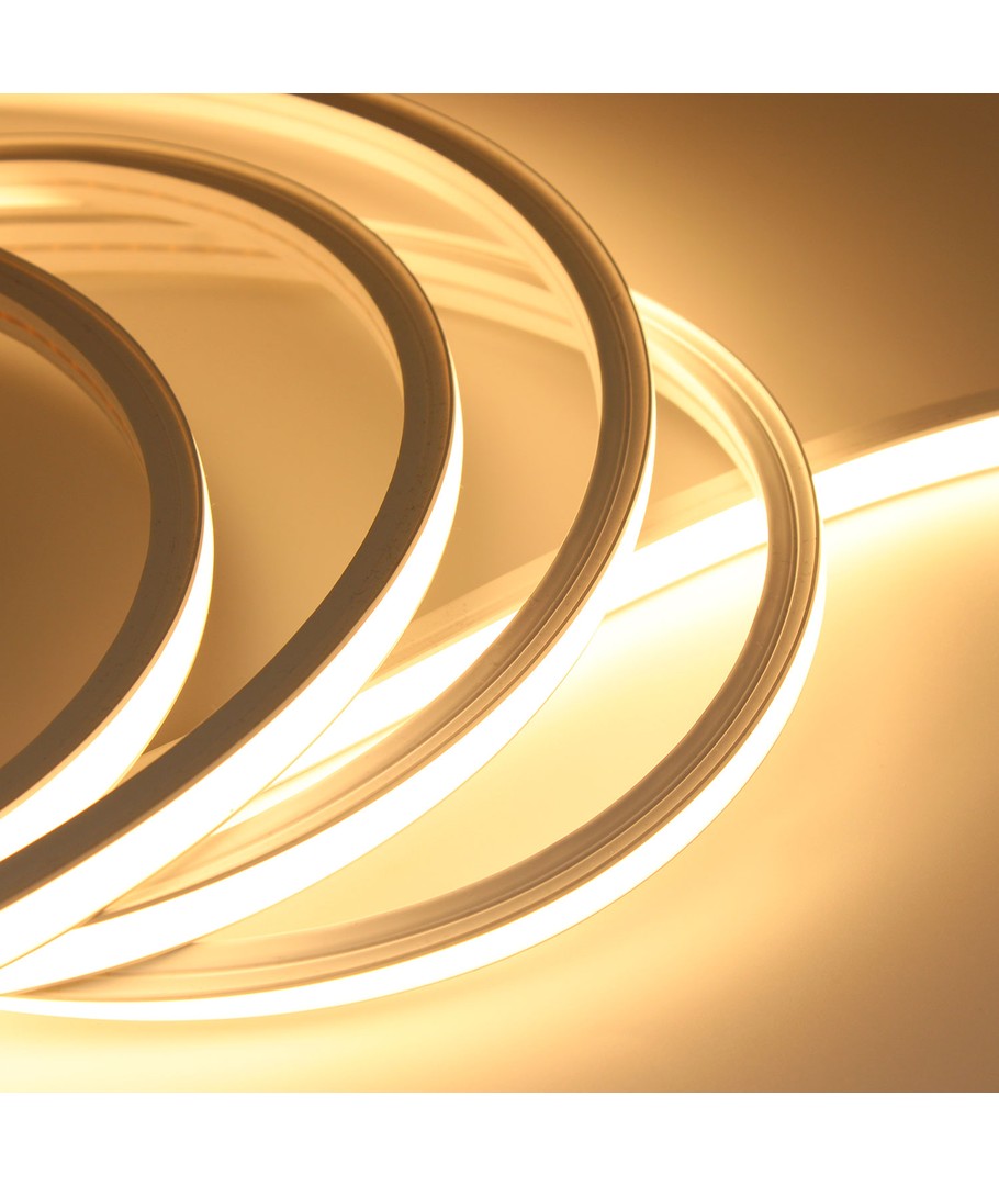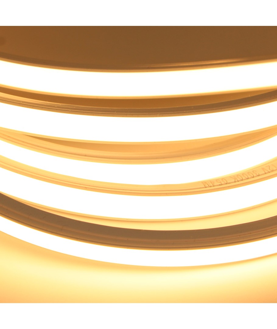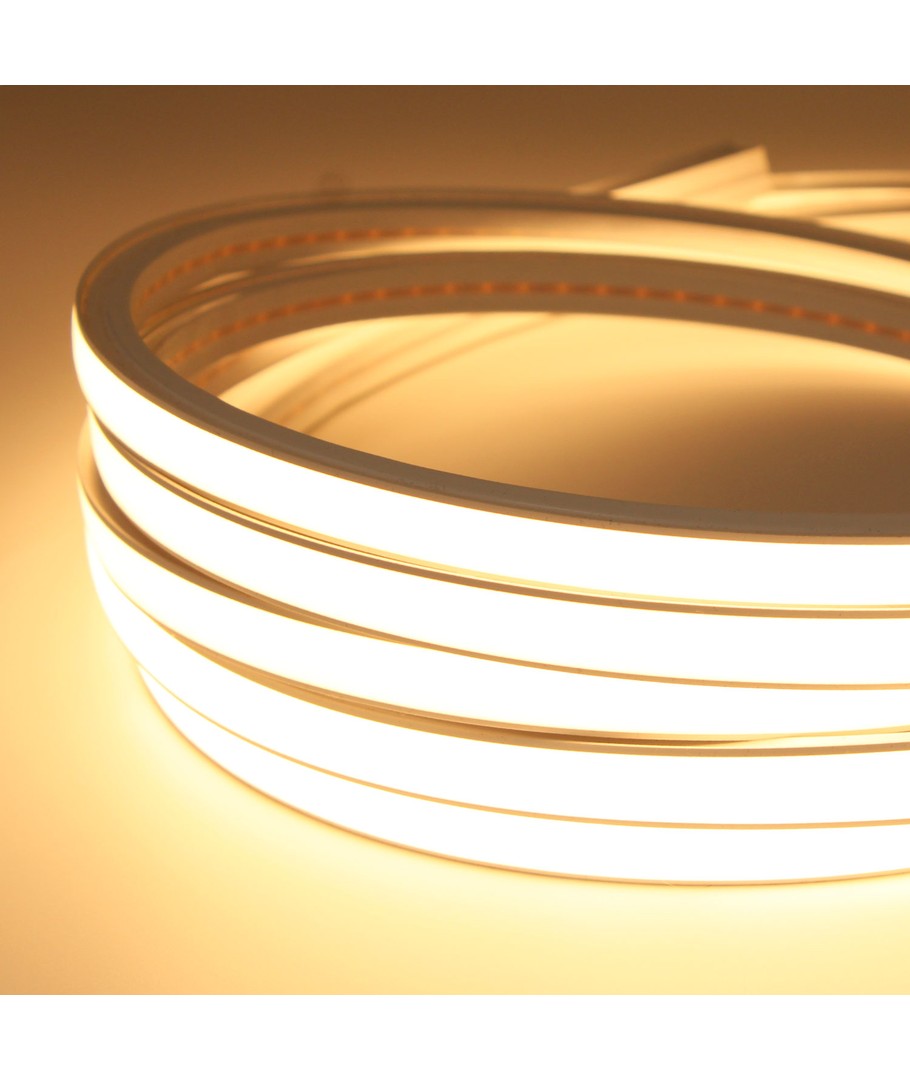 LED strippen designes til indendørs brug og har en IP20 klassificering, hvilket betyder, at den ikke er modstandsdygtig overfor vand. Dens fleksible neon flex gør det enkelt at tilpasse og integrere i forskellige lysdesigns, uden klippeafstand, hvilket giver en kontinuerlig og jævn belysning.