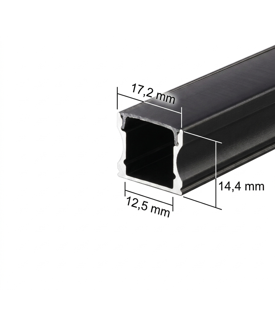 Vær opmærksom på, at det sorte cover absorberer en del af lyset. Der kommer ca. 40% af lysstyrken igennem sammenlignet med et mælkehvidt cover. Vi anbefaler derfor, at du benytter en kraftig LED-strip i denne profil for at opnå det ønskede lysniveau.