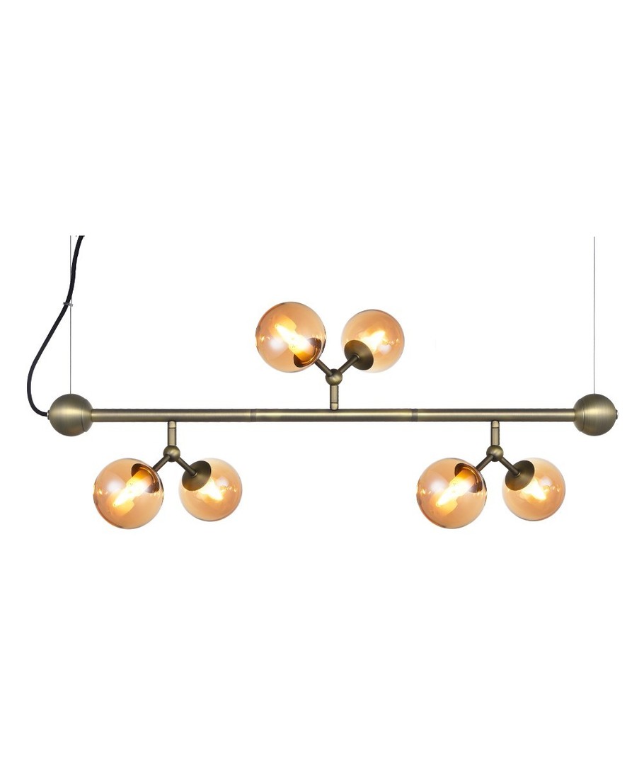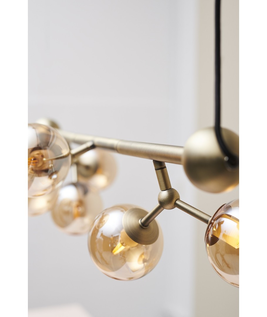 Lampens oxid-finish tilføjer en rå, industriel kant, der står i kontrast til de bløde linjer af glasglobene, hvilket gør den til et fremragende samlingspunkt over et langbord. Med sin elegante stil er den velegnet til både moderne og klassiske interiører. Lampens subtile nuancer og neutrale farvepalet gør den til et alsidigt valg, der passer ind i mange forskellige indretningsstile.