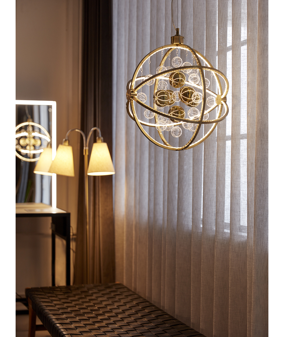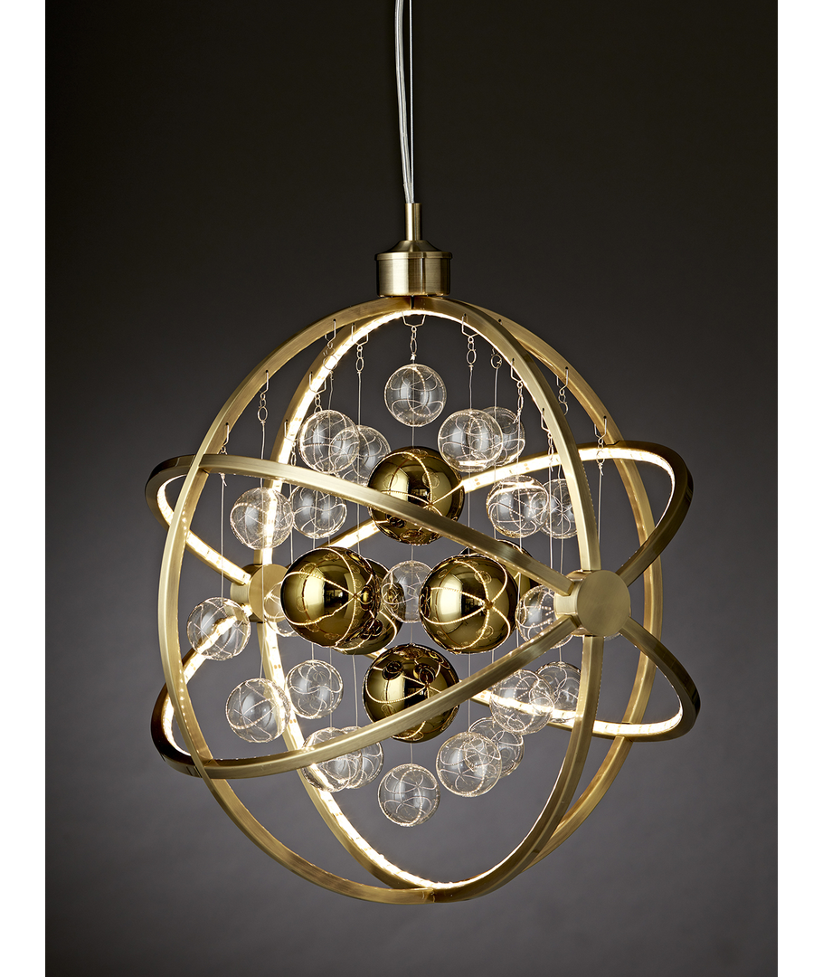 Galaxy Pendel i Antik Messing - lampen er udført i metal og glas, en anderledes fantastisk flot LED loftlampe. Lampen har et futurisk design og som navnet beskriver, giver det associationer til galaksen.
