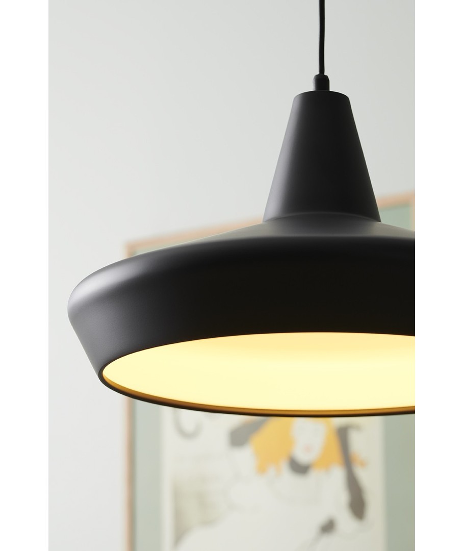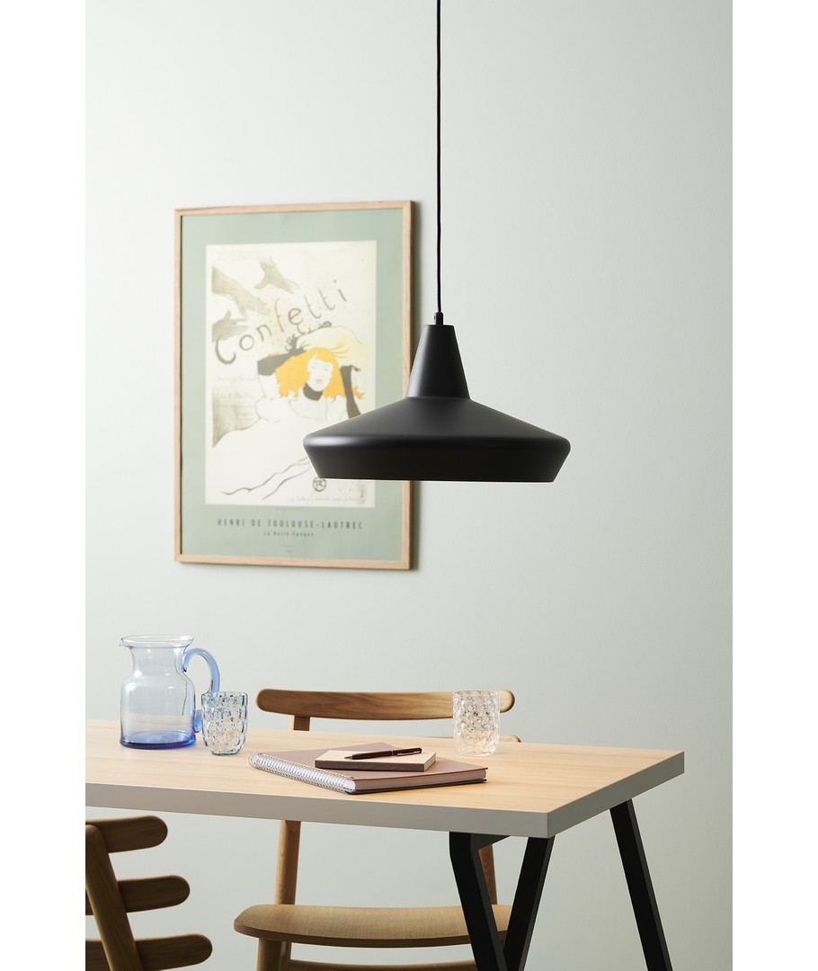 Med sin enkle, men elegante form, tilbyder denne pendel en slank silhuet, der passer i enhver type interiør. Den sorte farvefinish giver et moderne og tidløst udtryk, der nemt integreres i forskellige stilarter fra skandinavisk minimalisme til industrielt look.