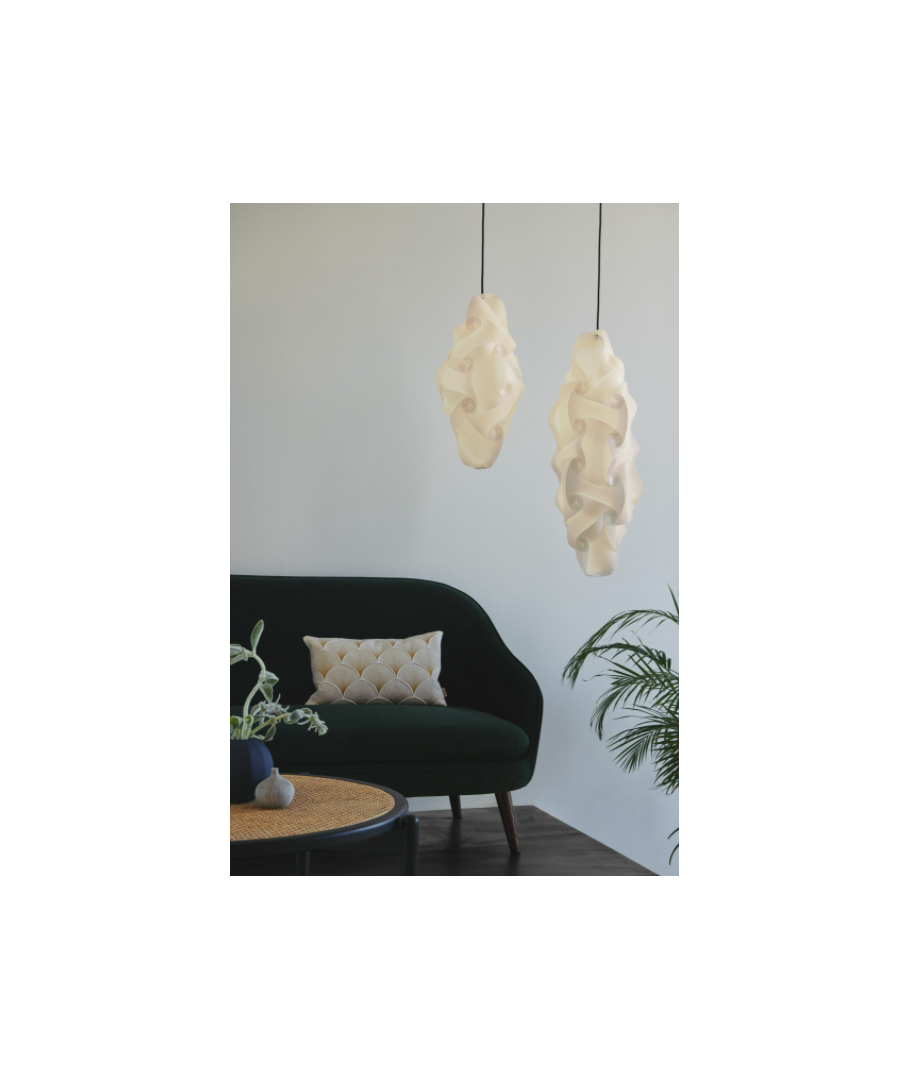 IQLIGHT Assemble, der i dag er under Halo Design, IQ-light er med sin spæde start tilbage i 1973 udviklet og designet af Danskeren Holger Strøm. Denne lampe D40 IQ-light forbinder man starks med intellegens, og det kan man sagten for det er en genial opfindelse. Med et simpelt system kan man lave MANGE forskellige udformninger med sin IQLIGHT lampe. Udgangspunktet er super enkelt og lige til, man erhverver sig en startpakke hvor der altid er medfølger 30 blade, derfra kan man så samle ikke mindre end 15 forskellige modeller ud af samme pakke. Ønsker man at kunne lave endnu mere tilkøber man blot en pakke mere. Systemet kan kombineres helt optil 120 blade, og her har man så en lampe på en diameter på 1 meter. At samle lampen kalder vi en hygge-leg, det er ikke svært, blot hyggetligt og det tager for den trænede ca. 5 minutter. Denne model D40 er med det mindste blad og finde i flere størrelser. Denne model levere uden ophæng, vi anbefaler IQ-Light pendel ophæng som leveres med 4 meter tekstil kabel, og sort svanehals. IQLight - Mulighedernes verden..