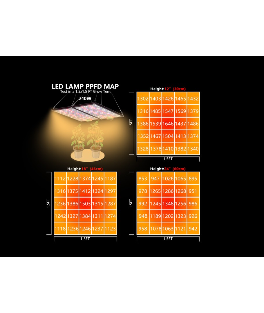Quantum vækstlampe 240W er en alsidig og pålidelig løsning, der leverer fremragende resultater for alle dine indendørs planter ved at kombinere avancerede funktioner med brugervenlighed.