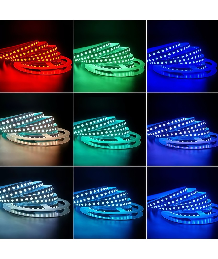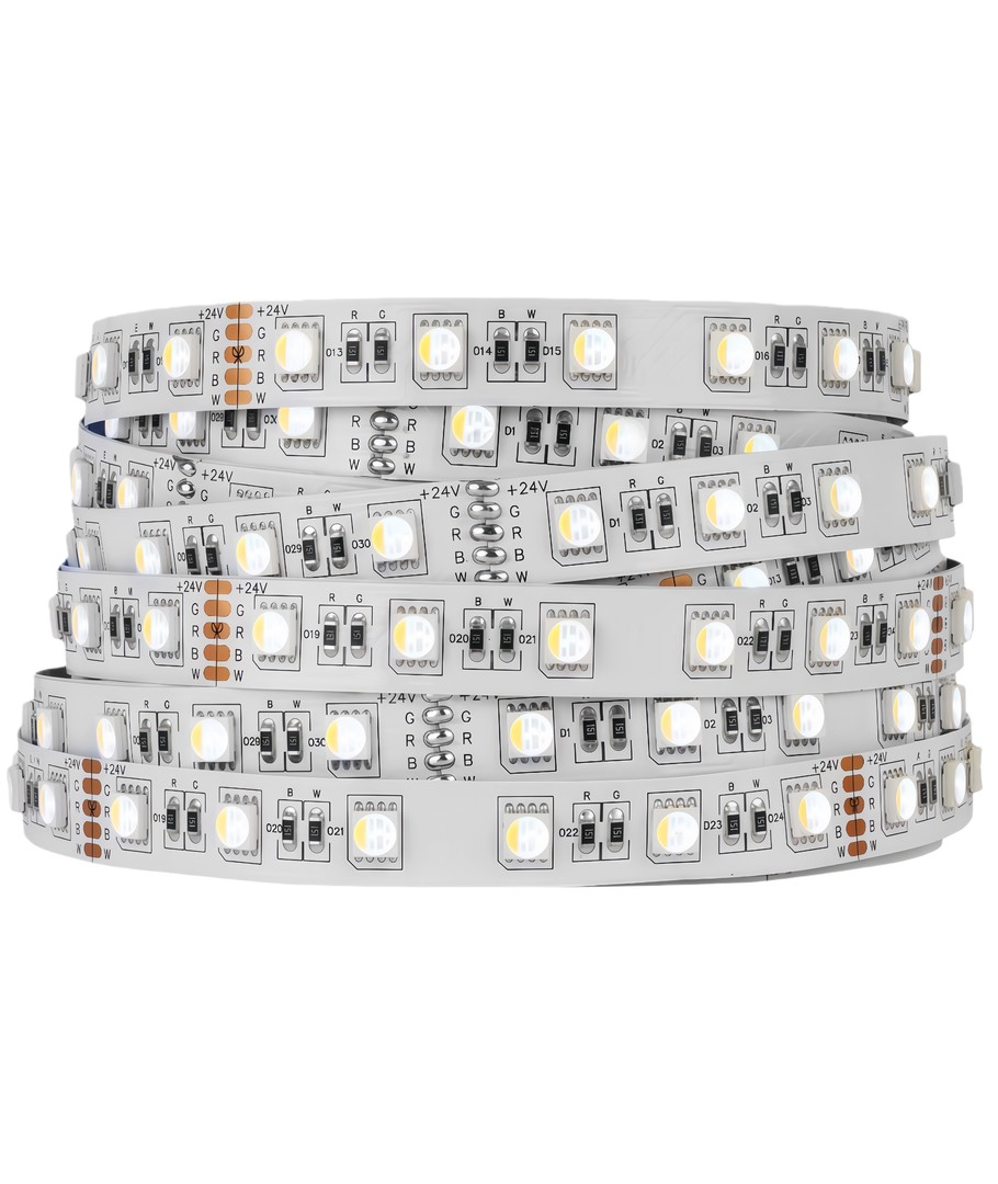 Oplev farverig belysning med denne 5 meter RGB+WW LED strip, der kombinerer funktionalitet og æstetik til både indendørs og udendørs brug. Denne LED strip har en effekt på 12W/meter og tilsluttes nemt til en 24V DC forsyning, hvilket gør den ideel til en bred vifte af projekter og installationer.