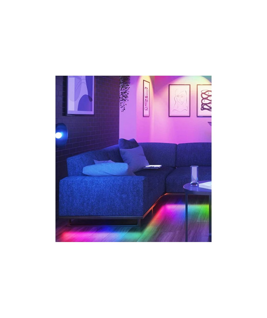 RGBIC strip kan lave forskellige farver med fede effekter, eks. kan skiftende farver løbe hen langs strippen.