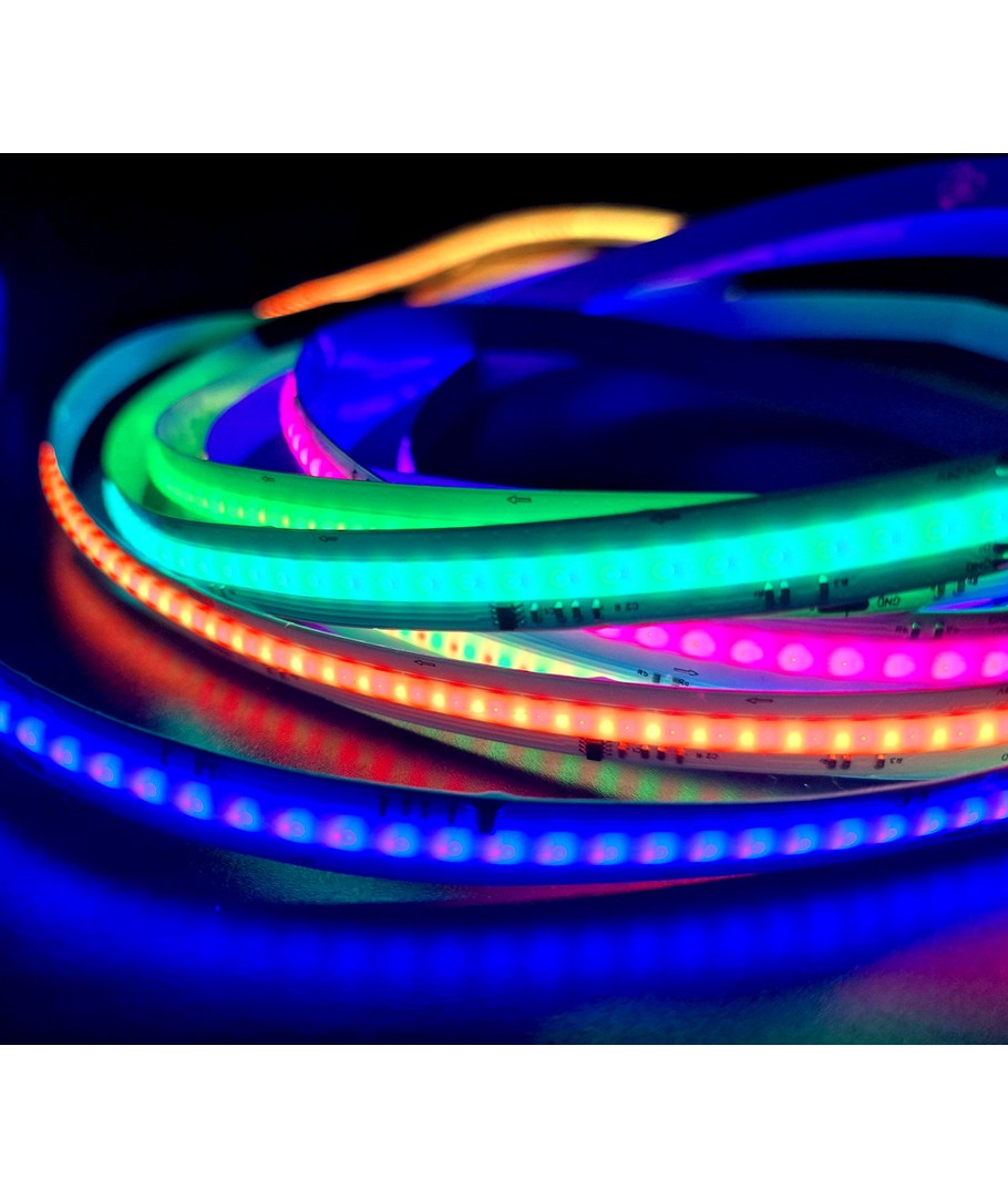 Opgrader dit lysdesign med denne avancerede 16W/m RGBIC COB-LED strip. Perfekt til både hjemmet og erhvervsmæssige installationer, tilbyder denne LED-strip en fantastisk belysningsløsning.