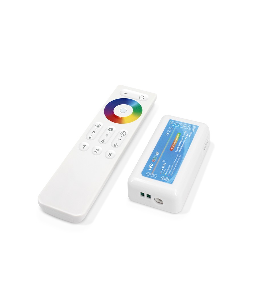 Leveres med RF trådløs fjernbetjening, med mulighed for trinløs justering af farve.