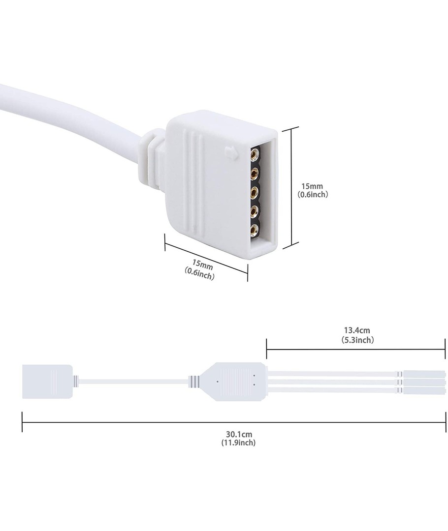 Kabel der bruges til at parallelforbinde 3 RGB+WW LED strips til samme controller.