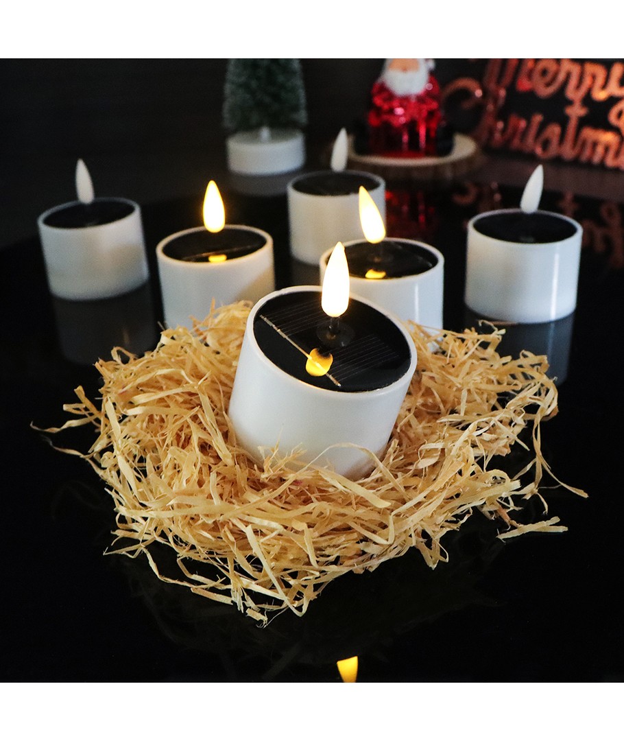 Oplev stemningsfuld belysning med vores 6-pak LED solcelle stearinlys.