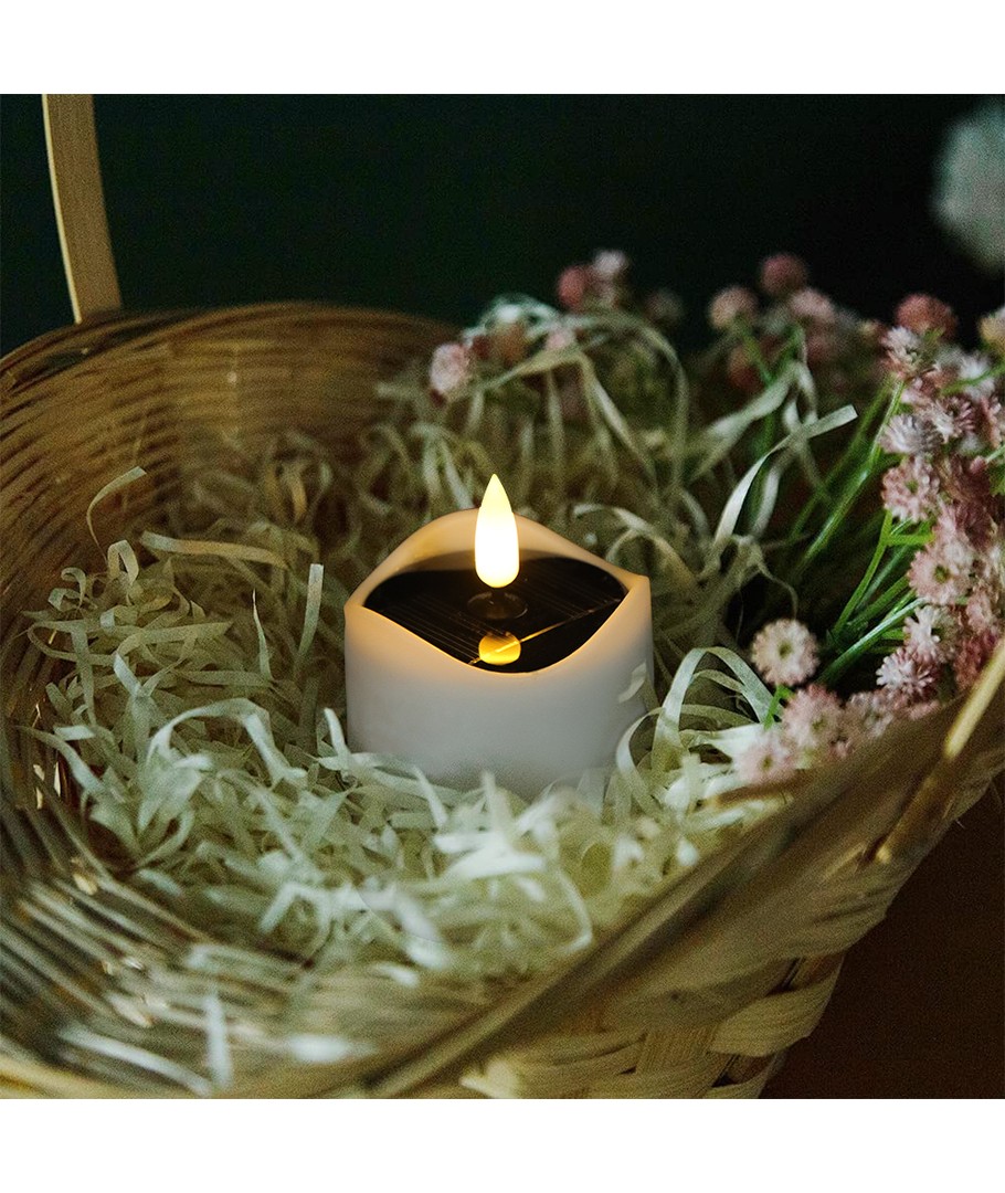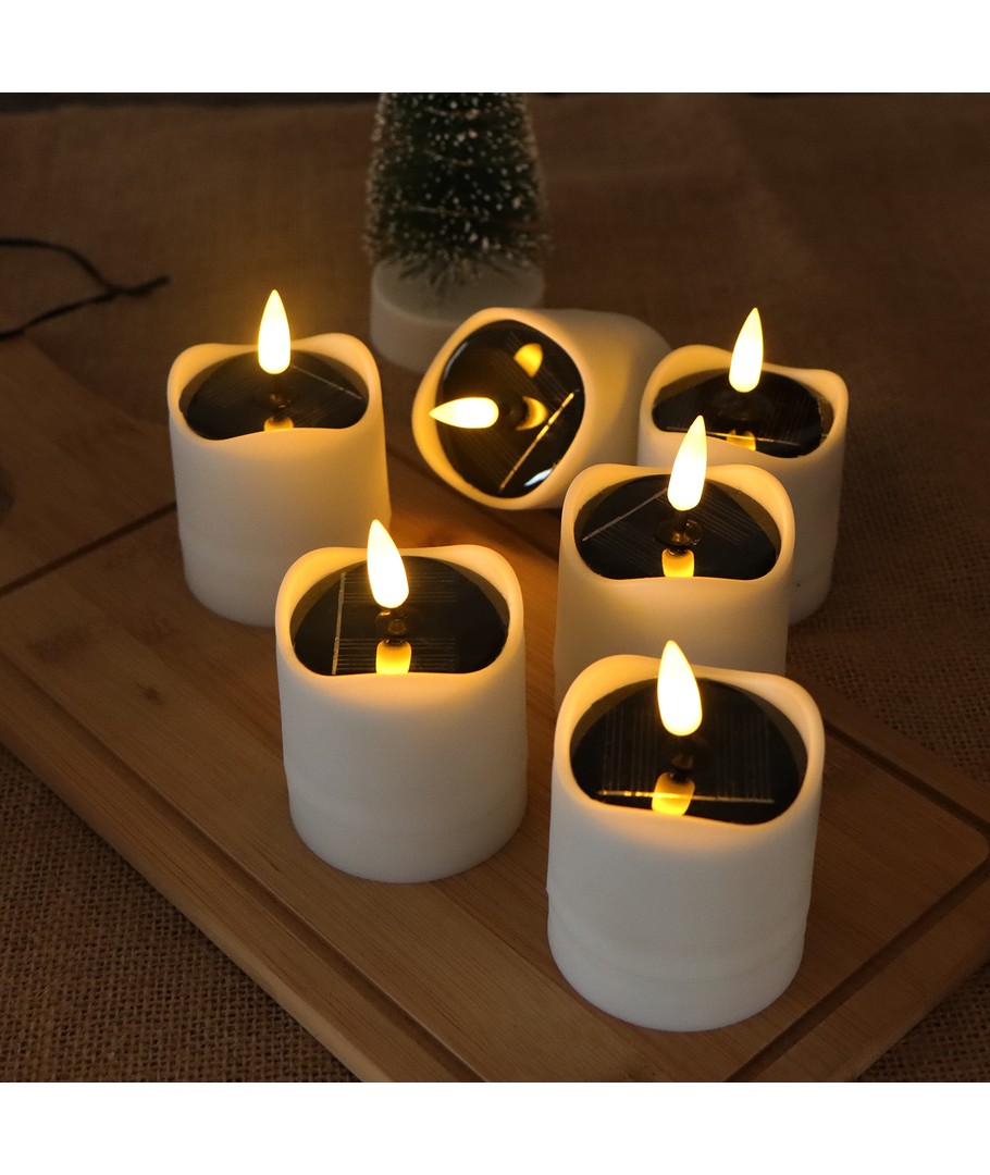 Oplev hyggelig belysning med vores 6-pak LED solcelle stearinlys, perfekt til at skabe en varm atmosfære både indendørs og udendørs.
