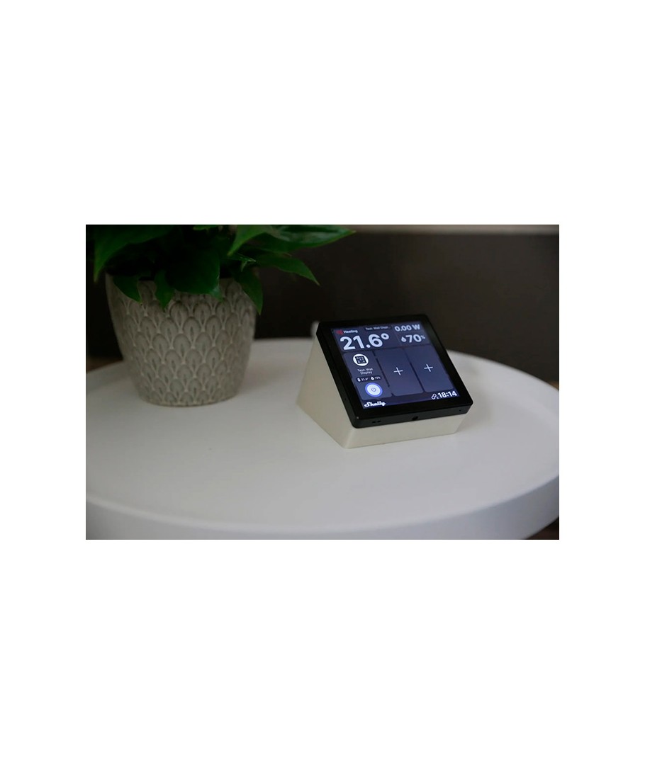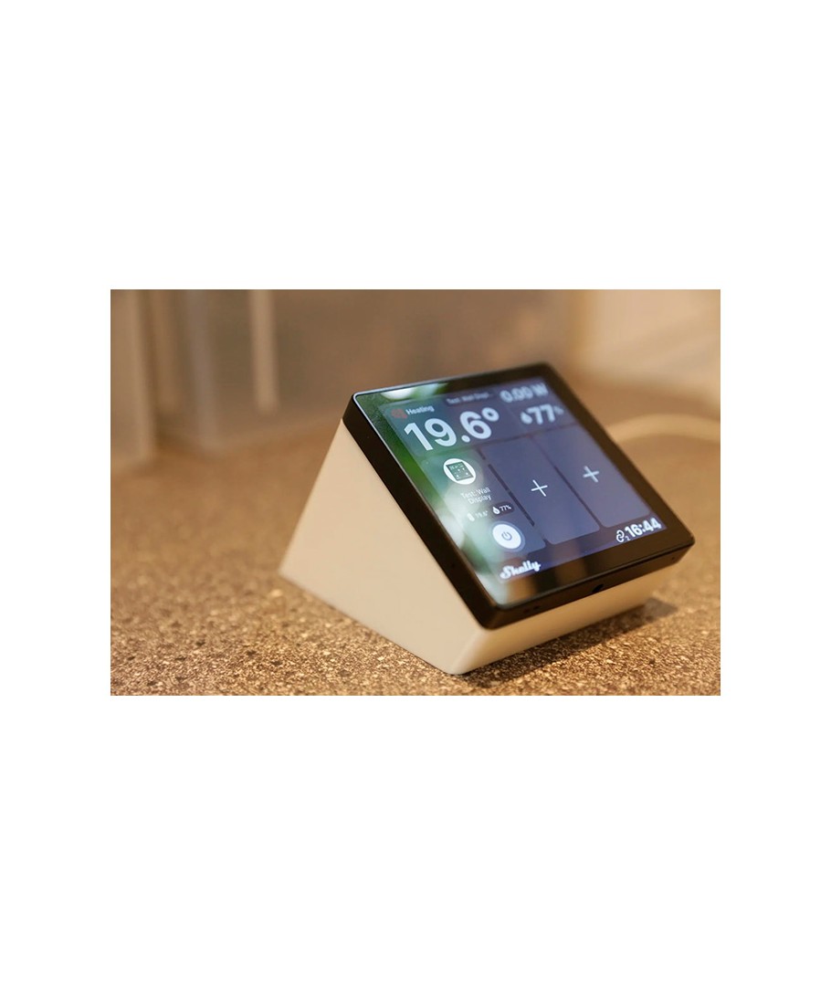 Installationen er enkel og kræver ikke komplekst værktøj eller besværlige processer. Du kan nemt placere dit Shelly Wall Display i standeren, og det vil stå stabilt og sikkert, klar til at vise dine oplysninger på en elegant måde.