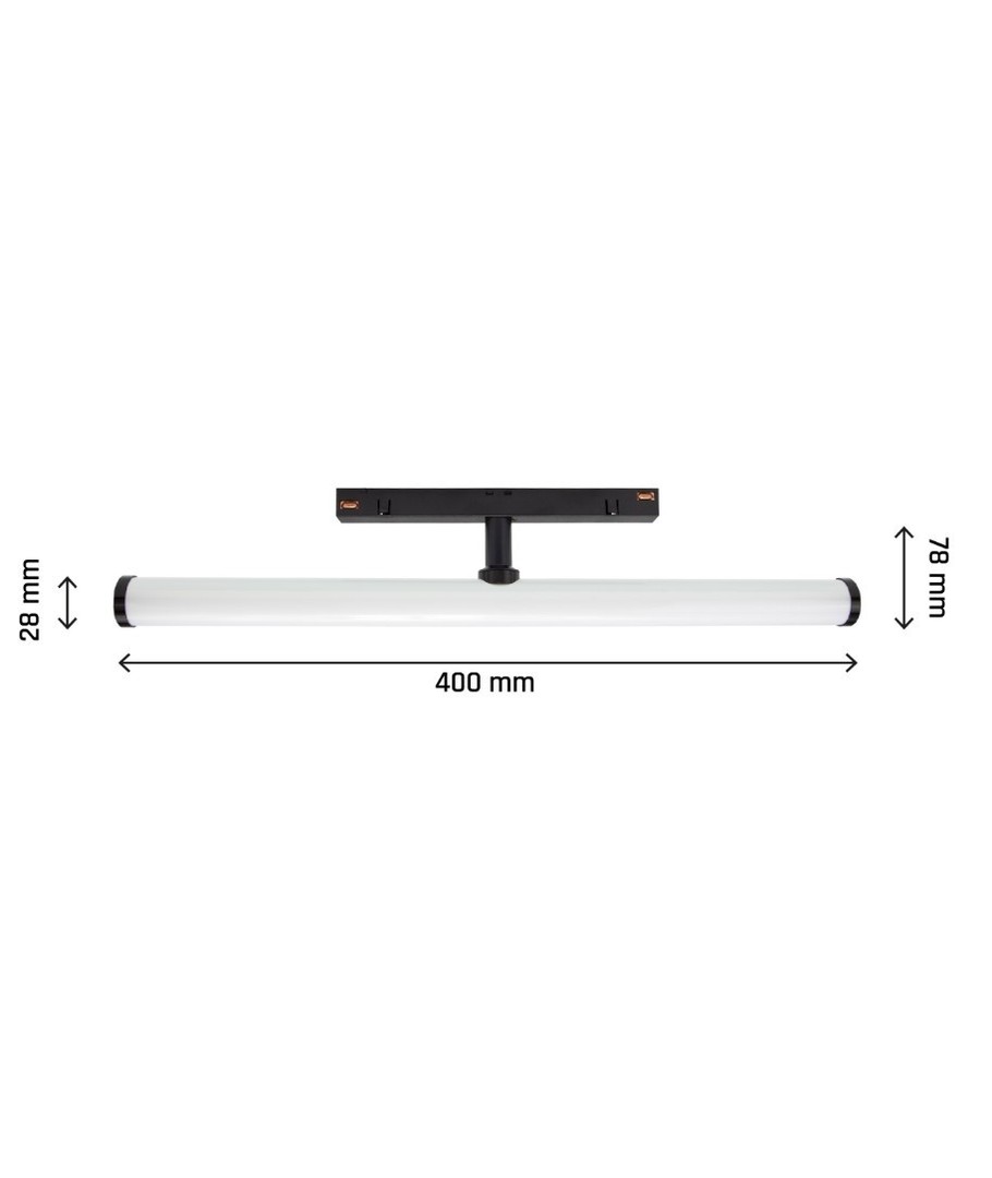 Med dimensioner på 400 x 75 x Ø28 mm og en elegant sort finish passer denne lampe perfekt i moderne interiører. Selvom den er IP20-klassificeret og dermed ikke vandtæt, er den ideel til indendørs brug i tørre omgivelser.