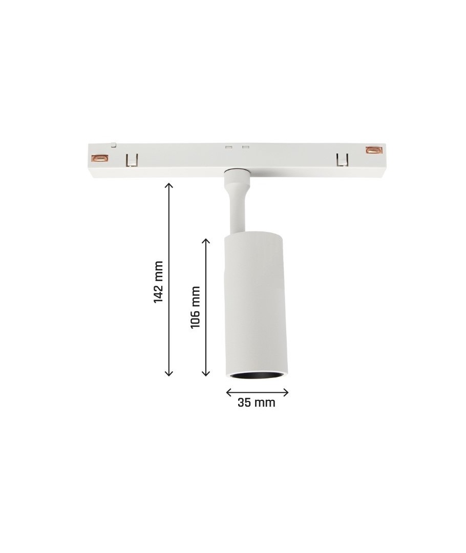 Høj lyskvalitet:Med dimensioner på 178 x Ø35 mm er denne skinnespot kompakt, men samtidig effektiv. Bemærk, at den har en IP20 klassificering, hvilket betyder, at den ikke er modstandsdygtig over for vand.