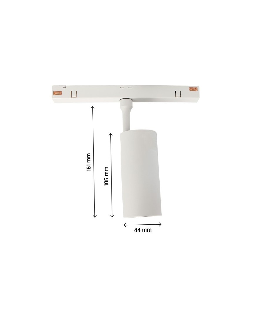 Skinnespotten tilsluttes til en 48V DC forsyning og har en effekt på 10W. Den integrerer en LED-lyskilde af høj kvalitet, som sikrer en lang driftstid op til 50.000 timer. Dette betyder, at du får et vedvarende lys i mange år med minimalt fald i lysstyrke.