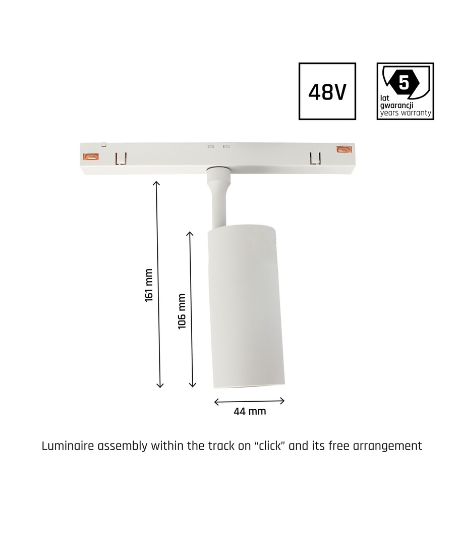 Med en effekt på 10W og tilslutning til en 48V DC forsyning, leverer systemet en lysstyrke på 700 lumens. Den fokuserede lysstråle på 24° sikrer et kontrolleret lys, som kan tilpasses til specifikke områder i rummet.
