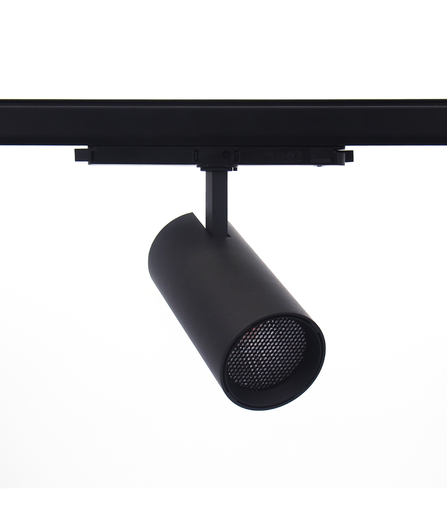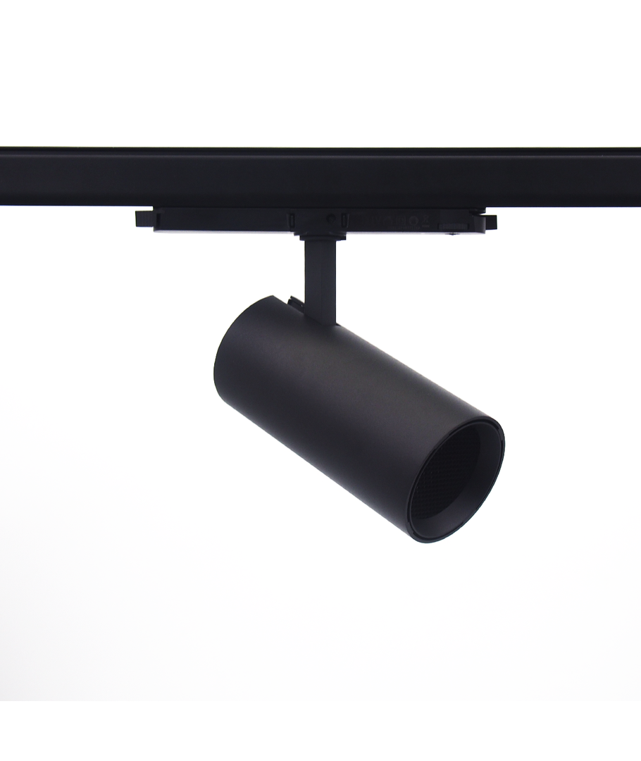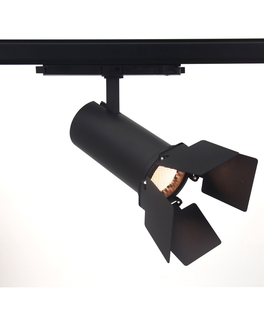 Til professionel belysning stilles der høje krav - Dette 30W 3-faset skinnespot er dæmpbart via DALI-styring samtidig kommer det komplet med barndoor justerbare klapper til præcis styring af lyset.