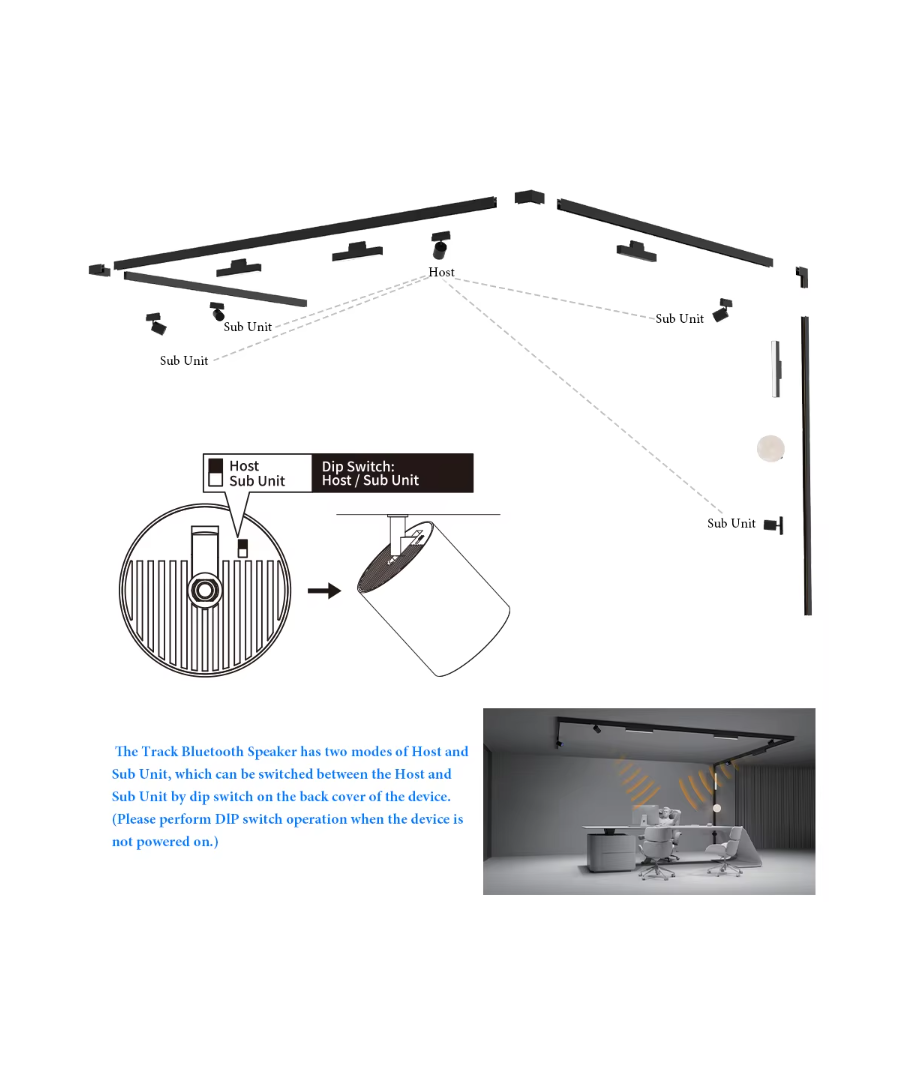 Den sorte Bluetooth højtaler til 3-faset skinner tilbyder en innovativ lydløsning, der let integreres i dine eksisterende skinnesystemer.
