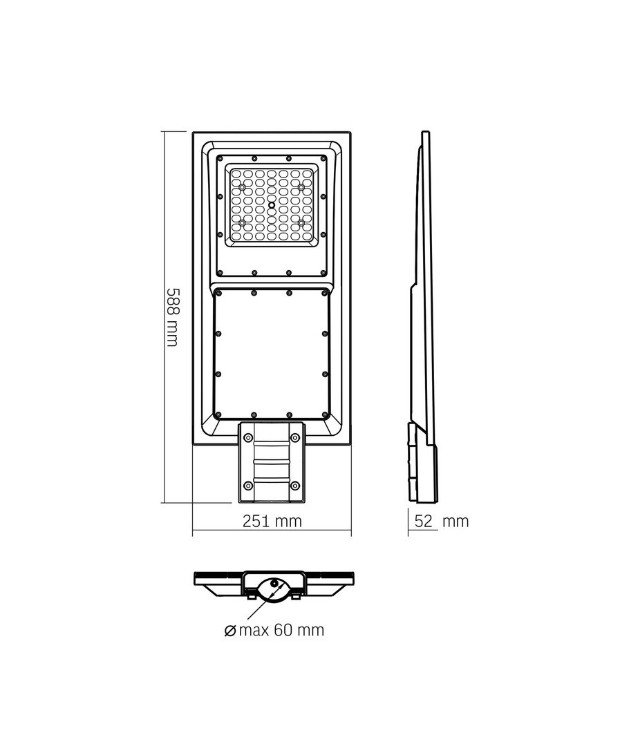 Denne LED solcelle gadelampe er en pålidelig og bæredygtig løsning til belysning af udendørs områder, samtidig med at den sparer energi og reducerer miljøpåvirkningen.
